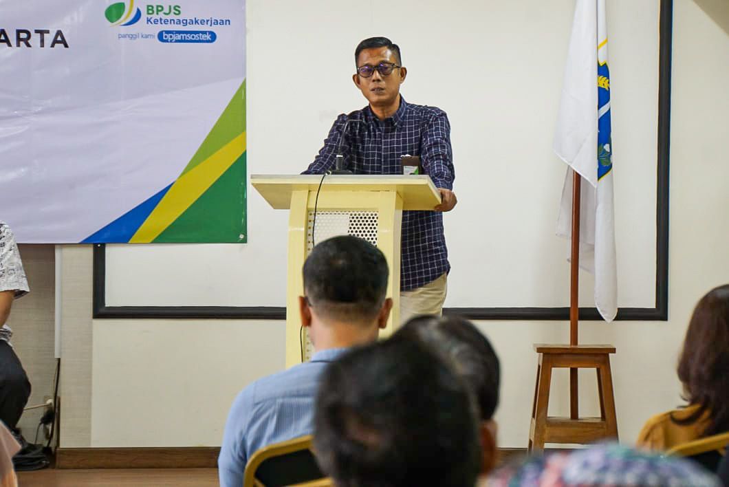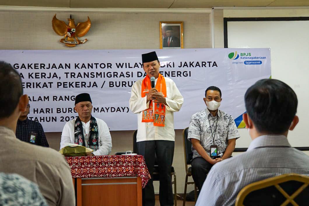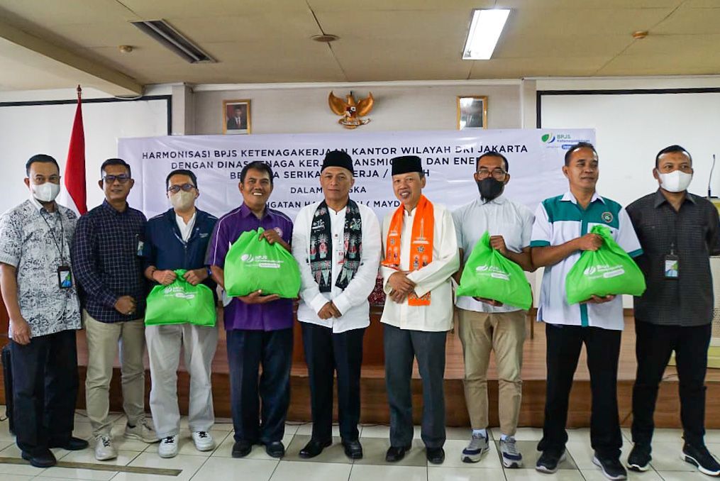Pemerintah Kota Administrasi Jakarta Pusat memberikan 600 paket sembako kepada lima perwakilan Serikat Buruh di Ruang Pertemuan Sudin JP, Blok C, Lantai 5, Kantor Wali Kota Jakarta Pusat, Jumat (14/4).