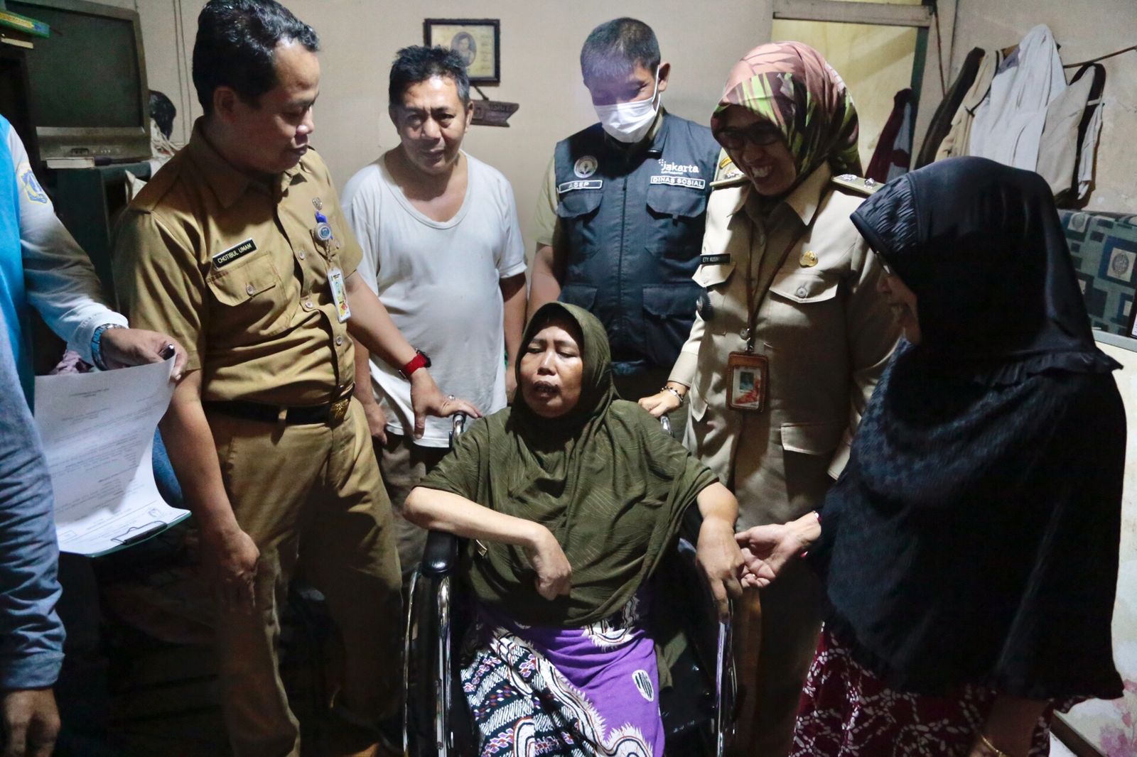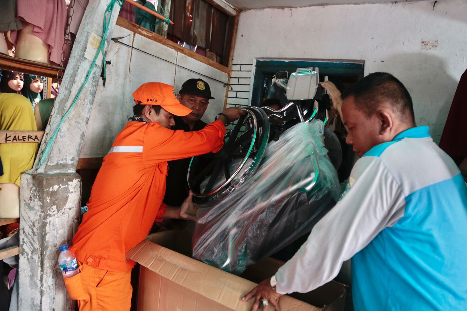 Suku Dinas Sosial Kota Administrasi Jakarta Pusat memberikan bantuan kursi roda bagi dua warga di RW 01 dan RW 03, Kelurahan Kampung Bali, Kecamatan Tanah Abang, Jakarta Pusat, Selasa (6/6).