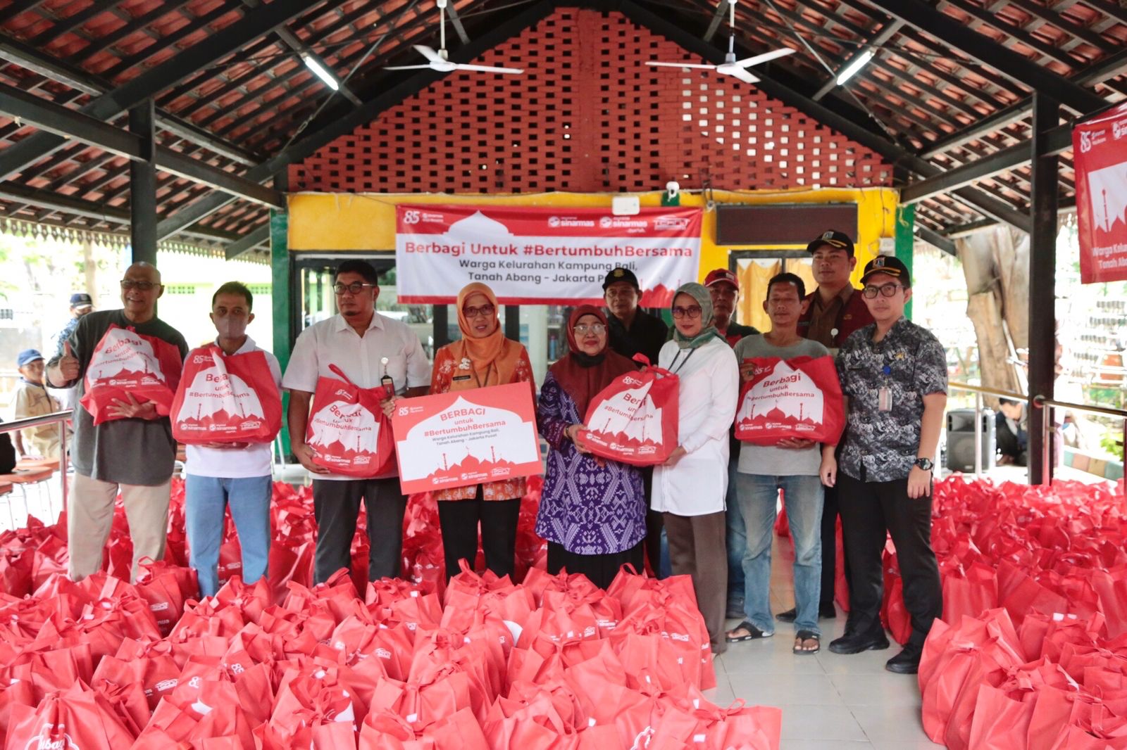 Kelurahan Kampung Bali berkolaborasi dengan Asuransi Sinar Mas memberikan paket sembako bagi warga kurang mampu di tiga RW, Kecamatan Tanah Abang. Secara simbolis penyerahan diberikan kepada tiga Ketua RW di RPTRA Hati Suci, Kecamatan Tanah Abang, Jakarta Pusat, Kamis (13/4).