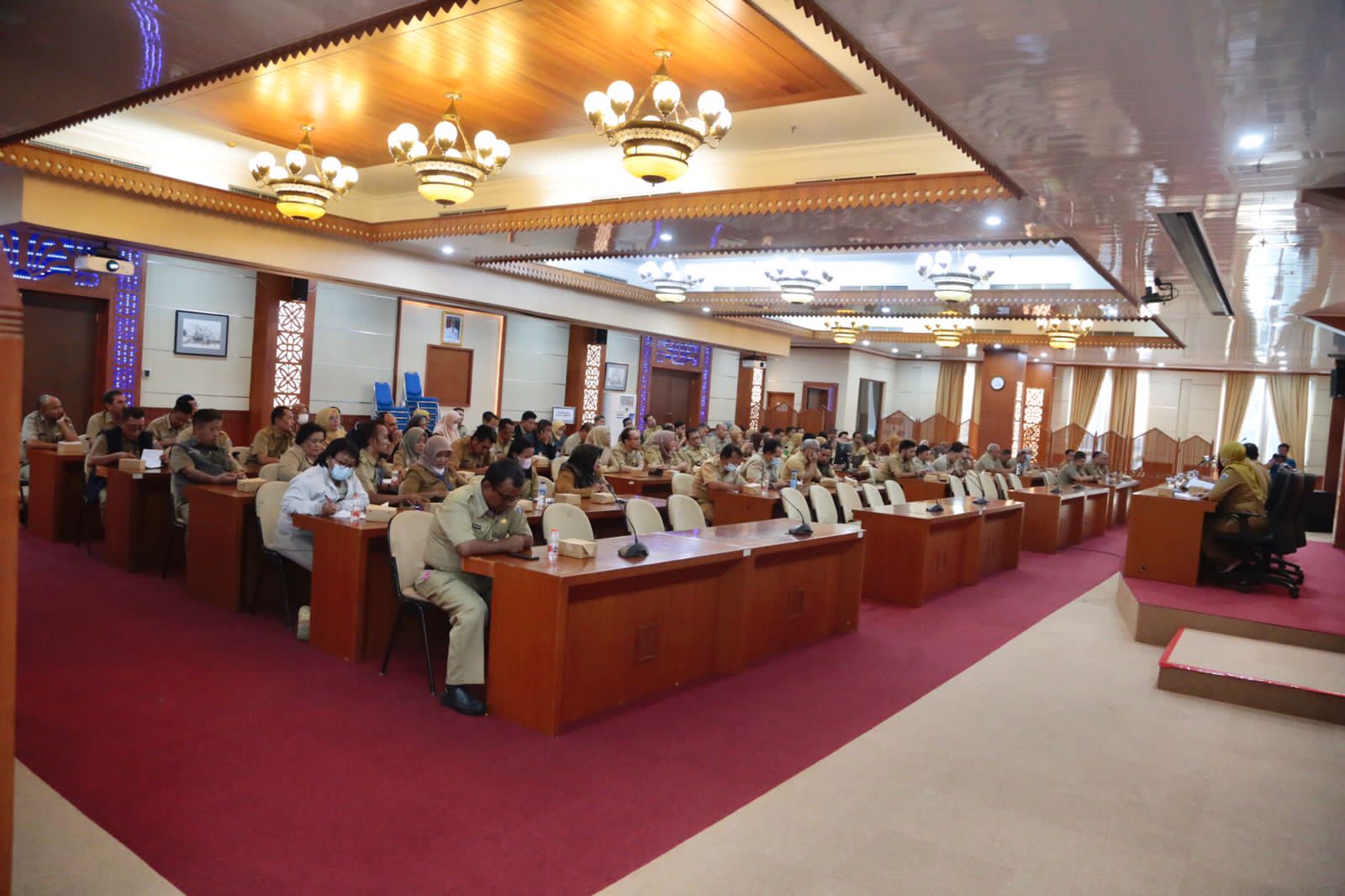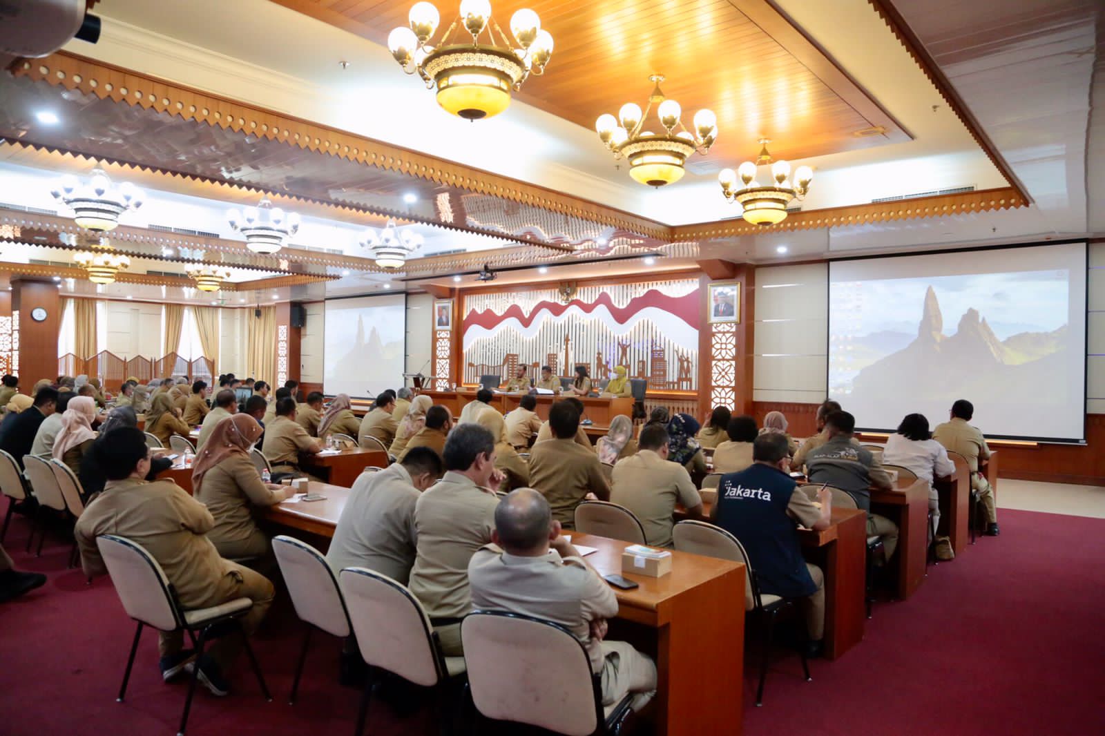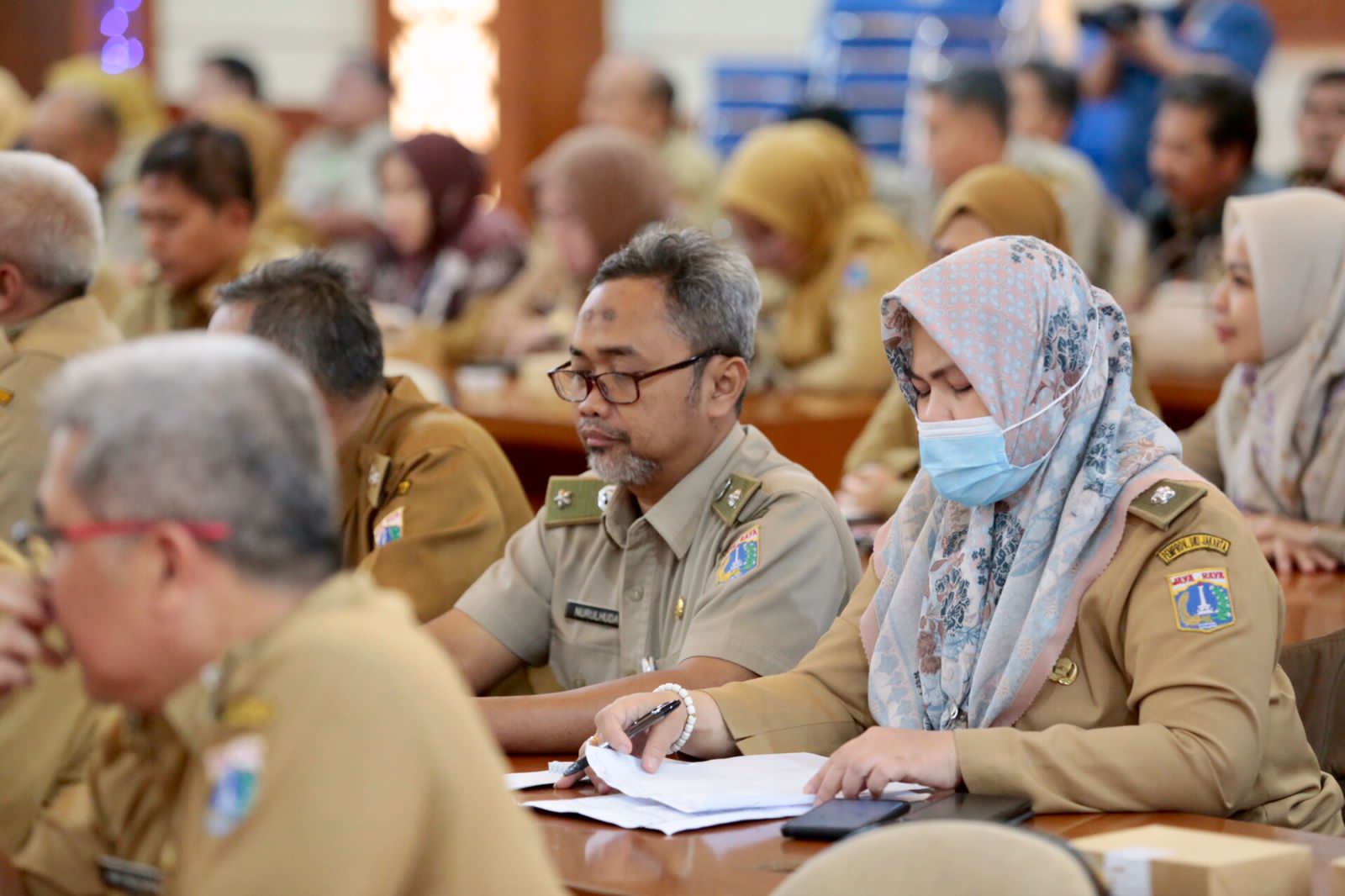 Sekretaris Kota (Sekko) Kota Administrasi Jakarta Pusat Iqbal Akbarudin membuka pembinaan serta evaluasi bagi kelurahan dan kecamatan Tahun 2023 di Ruang Pola, Kantor Wali Kota Jakarta Pusat, Senin (26/6).