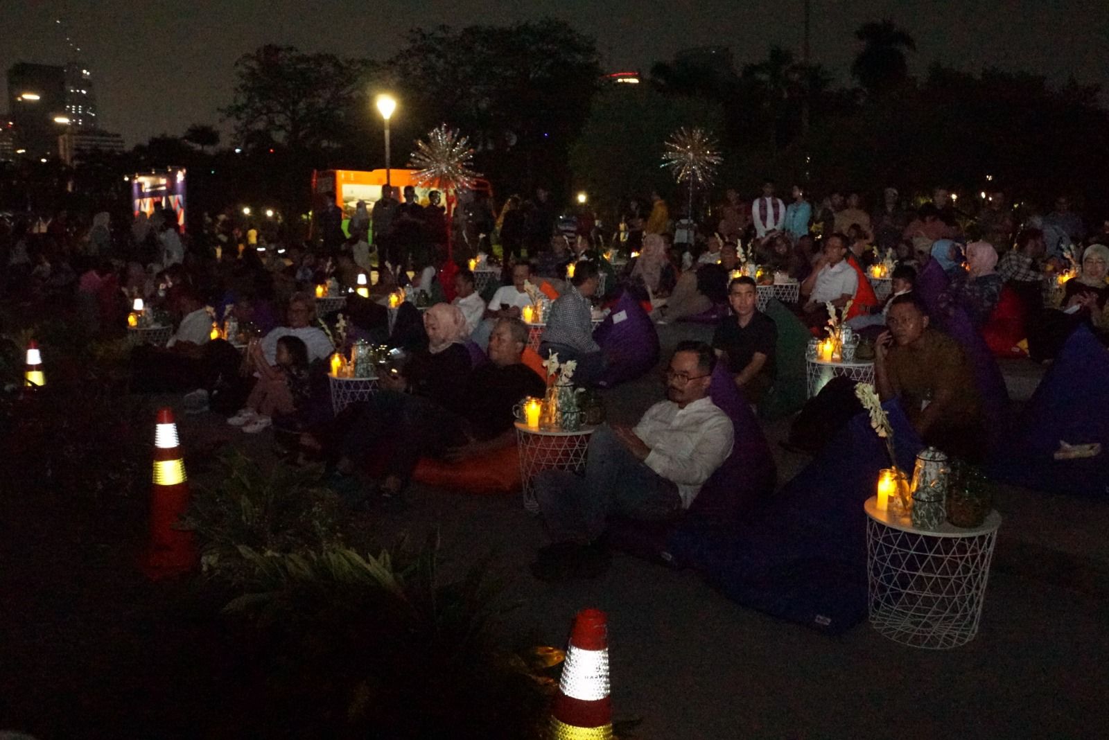 Jajaran Pemerintah Provinsi DKI Jakarta adakan nonton bareng video mapping “Gegap Gempita Monas” bersama warga, di Silang Barat Monumen Nasional, Kecamatan Gambir, Jakarta Pusat, Sabtu (24/6) malam.
