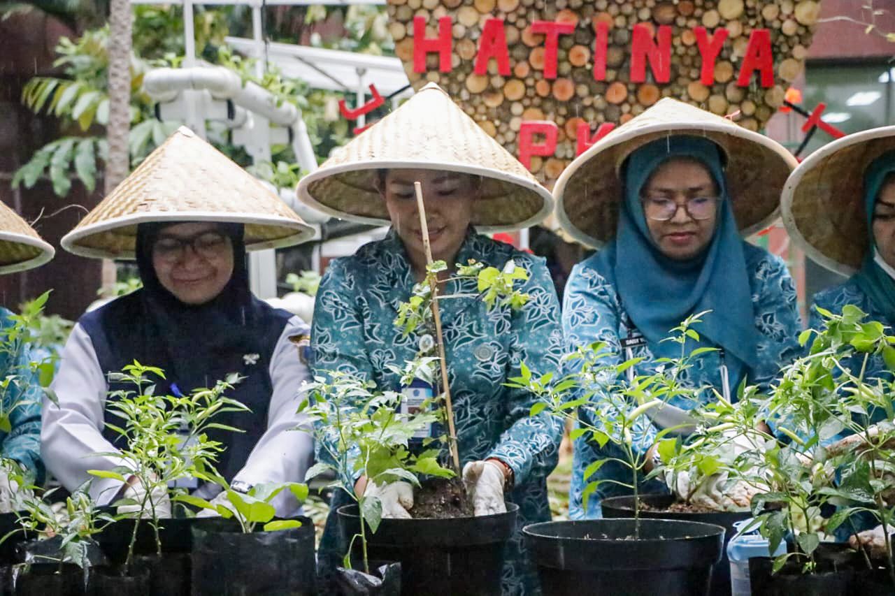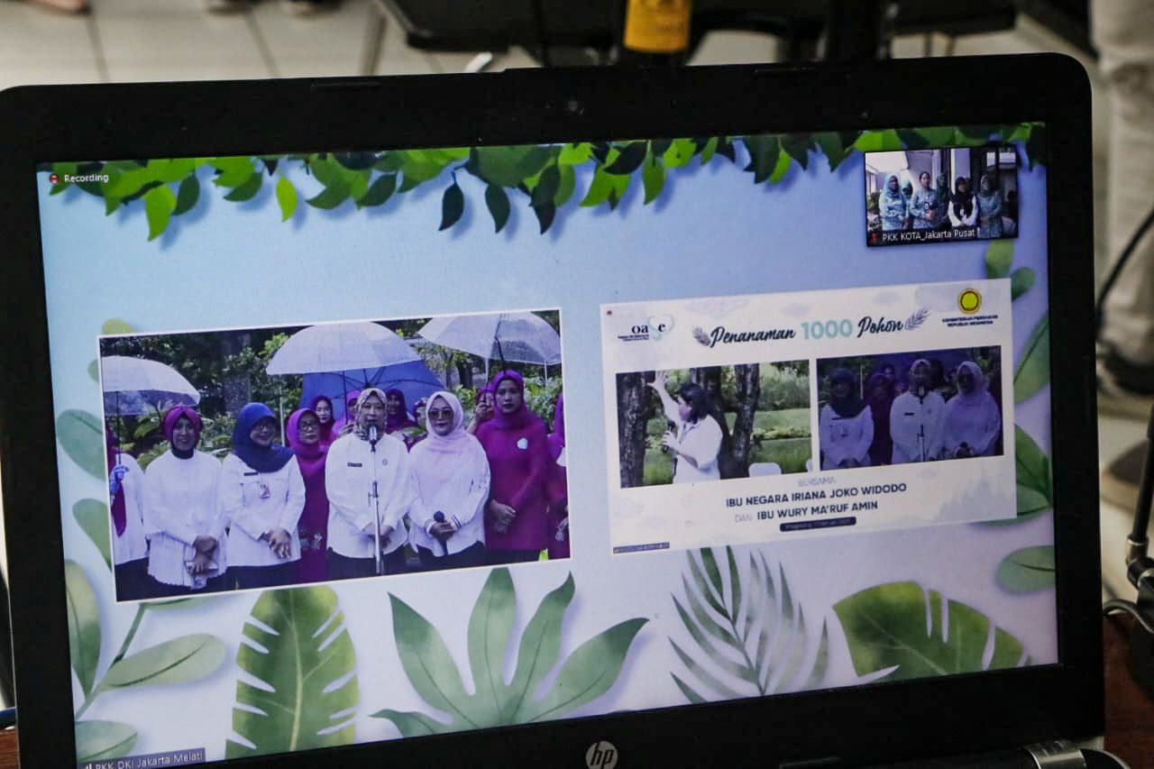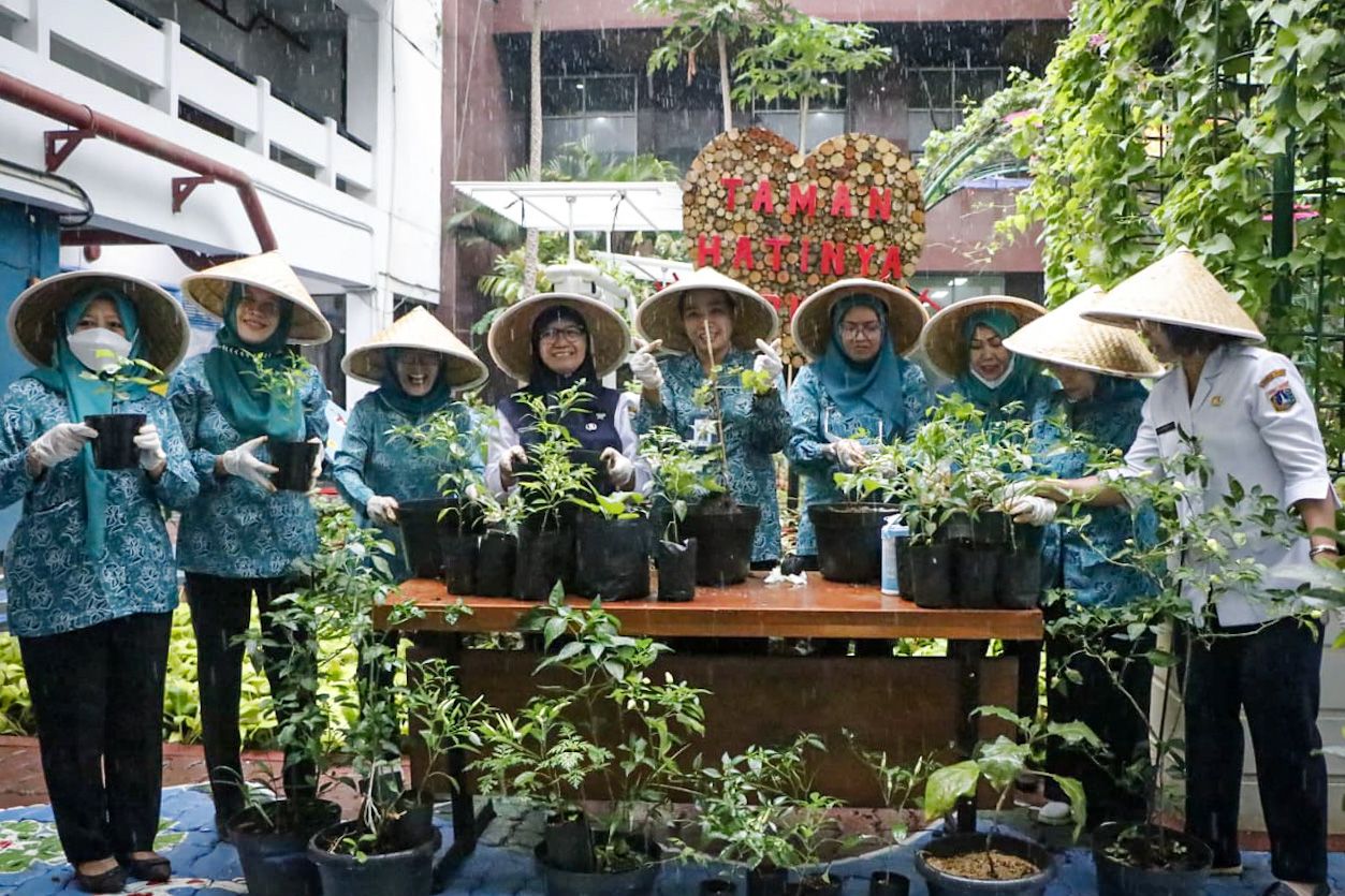 Tim Penggerak Pemberdayaan dan Kesejahteraan Keluarga (TP-PKK) Kota Administrasi Jakarta Pusat mengikuti program penanaman 1.000 pohon di Taman Hatinya PKK, JP Farm, Kantor Wali Kota Administrasi Jakarta Pusat, Rabu (1/2).