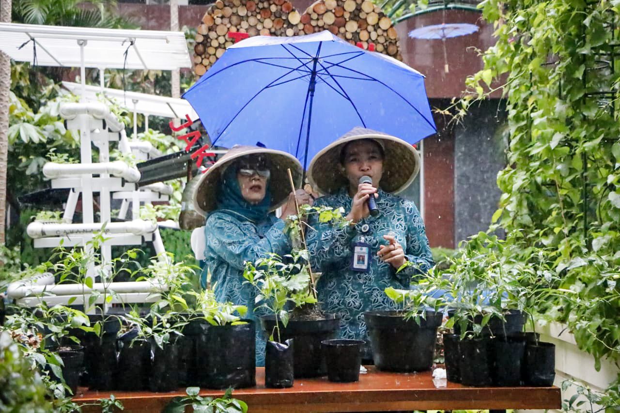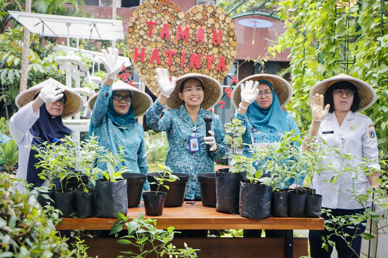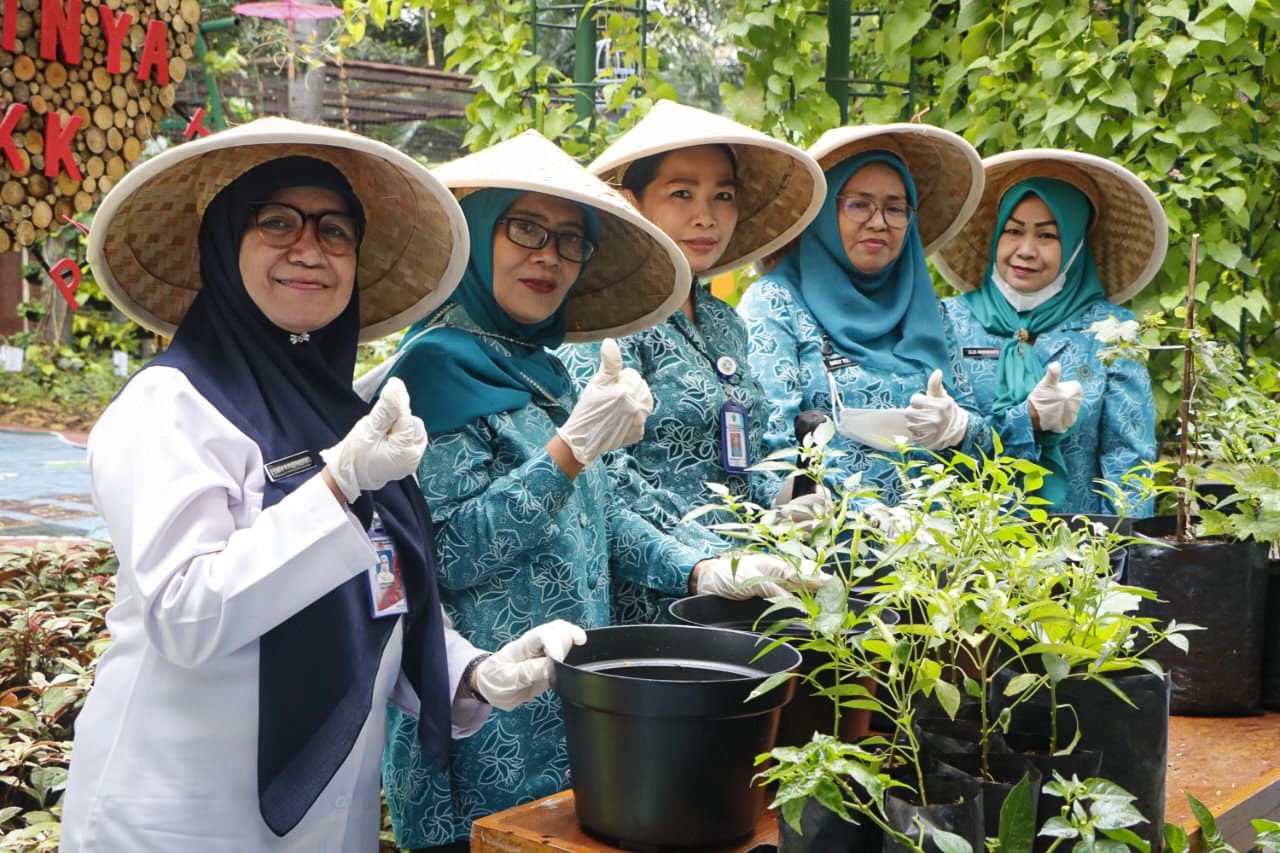 Tim Penggerak Pemberdayaan dan Kesejahteraan Keluarga (TP-PKK) Kota Administrasi Jakarta Pusat mengikuti program penanaman 1.000 pohon di Taman Hatinya PKK, JP Farm, Kantor Wali Kota Administrasi Jakarta Pusat, Rabu (1/2).