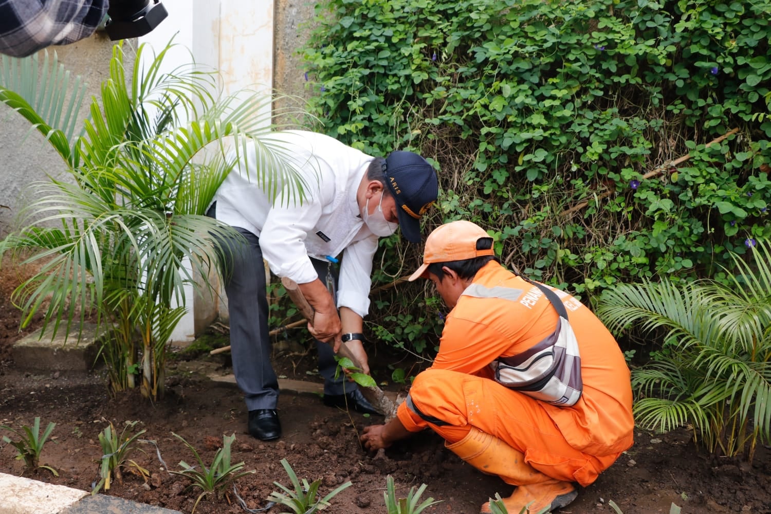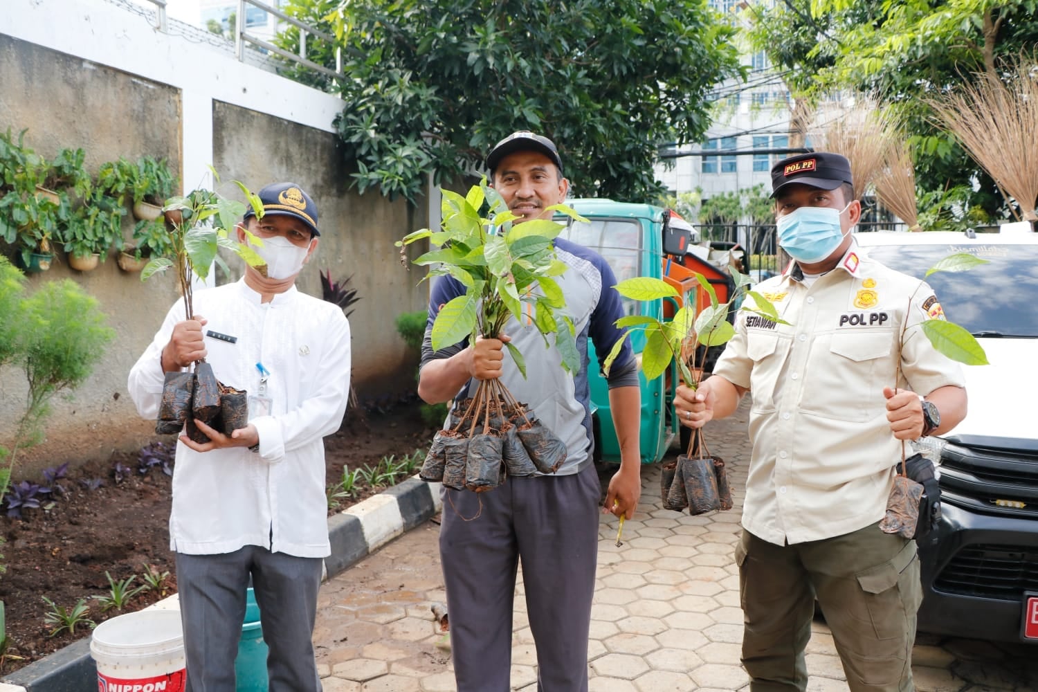 Pihak jajaran Kelurahan Gambir melakukan penanaman pohon di halaman Kantor Kelurahan Gambir, Kecamatan Gambir, Jakarta Pusat, Jumat (6/1).