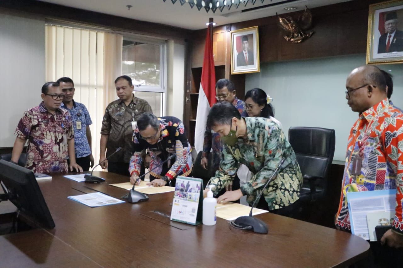 Wali Kota Administrasi Jakarta Pusat Dhany Sukma didampingi Sekretaris Kota Iqbal Akbarudin, Asisten Perekonomian dan Pembangunan Setko Administrasi Jakarta Pusat Bakwan Ferizan Ginting melakukan penandatangan tersebut di Ruang Rapat Walikota, Kantor Wali Kota Jakarta Pusat, Jalan Tanah Abang I, Kamis (30/3).