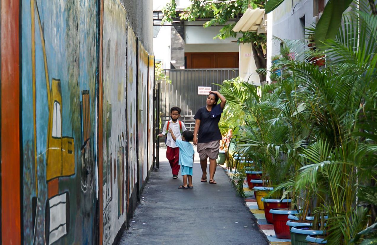 Dalam penataan kawasan ini, beberapa perubahan dilakukan mulai dari pengaspalan, perbaikan saluran, penambahan penghijauan hingga mural yang instagramable.