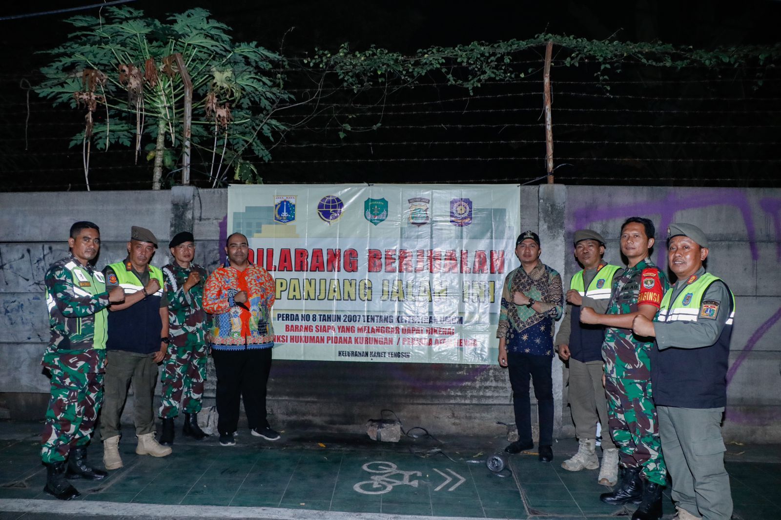 Kelurahan Karet Tengsin menggelar penataan pedagang kaki lima (PKL) dan parkir liar di trotoar sepanjang Jalan KH. Mas Mansyur, Kecamatan Tanah Abang, Jakarta Pusat, Kamis (15/6) malam.