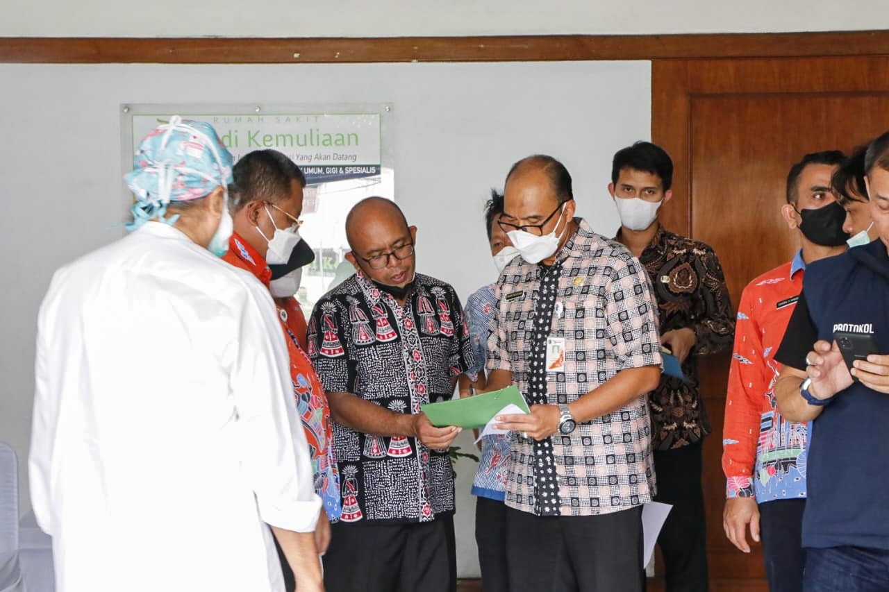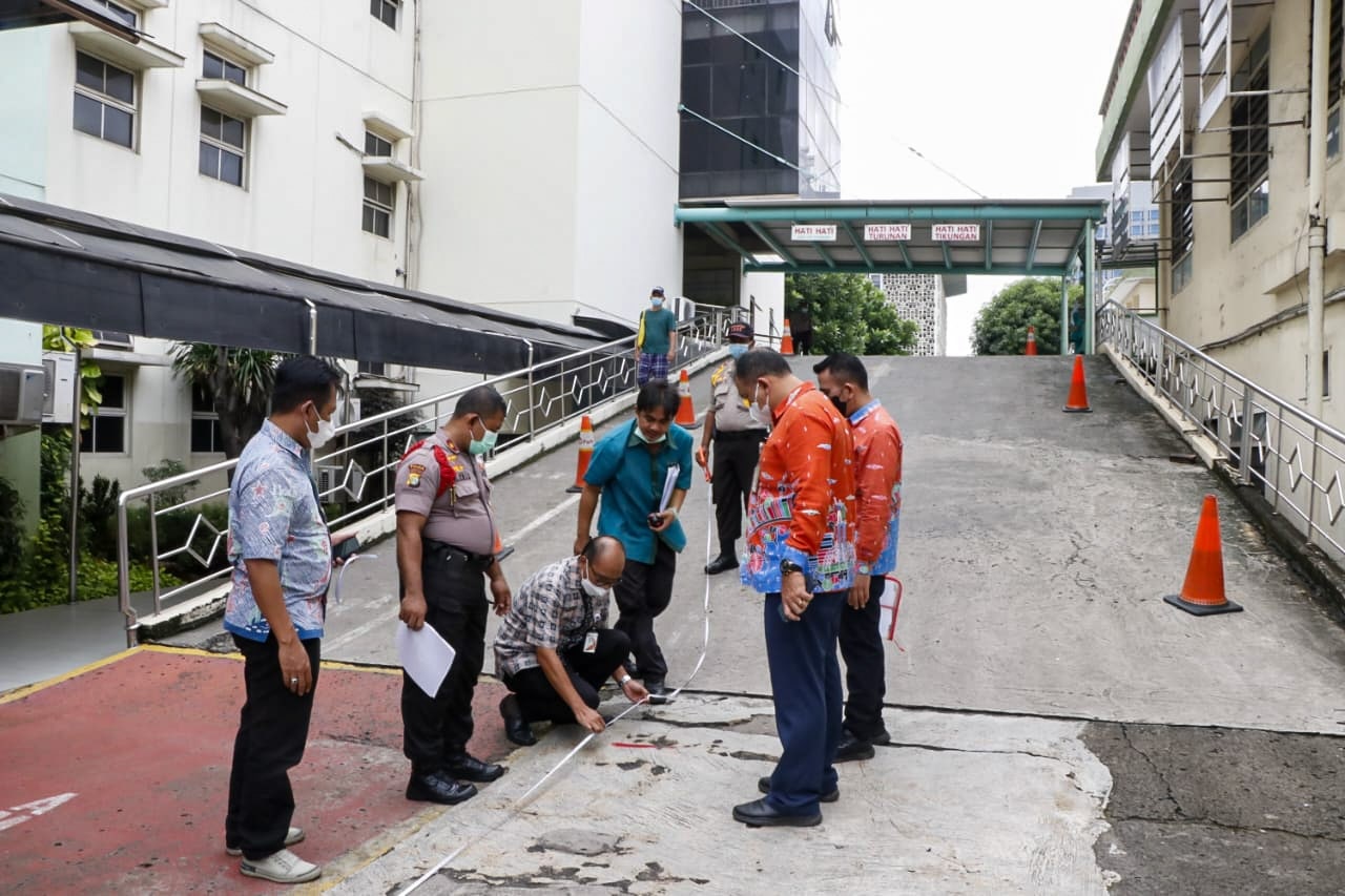 Pemerintah Kota Administrasi Jakarta Pusat meninjau lokasi hasil penelitian fisik kewajiban Fasilitas Sosial-Fasilitas Umum (Fasos-Fasum) di RS Budi Kemuliaan, Gambir, Jakarta Pusat, Kamis (5/1).