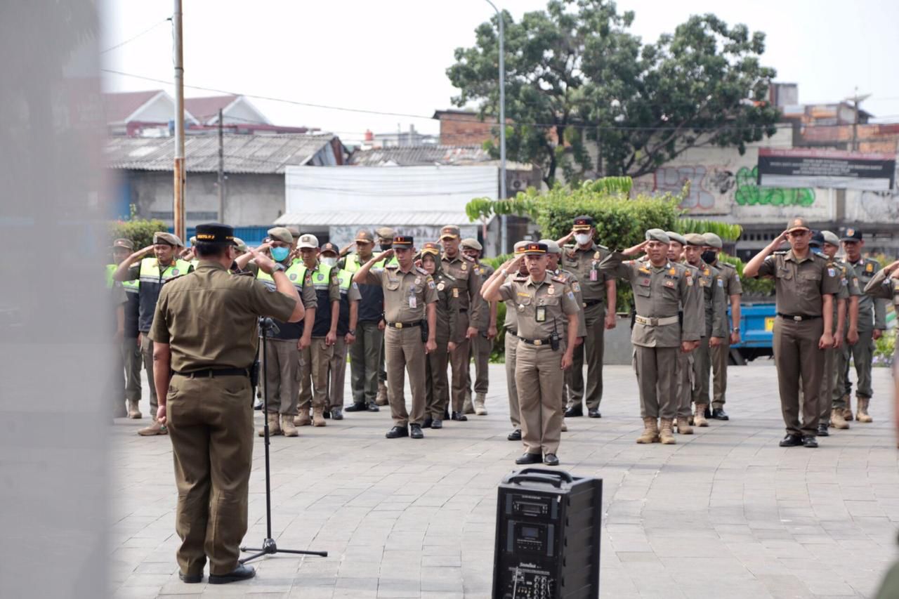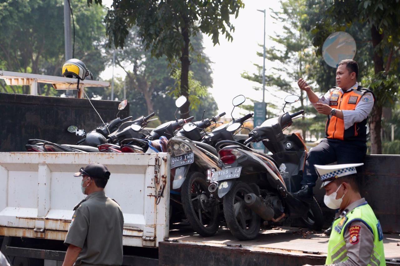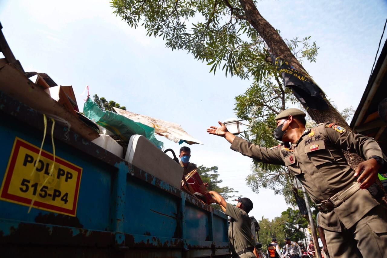 Petugas gabungan yang terdiri dari Satuan Polisi Pamong Praja (Satpol PP), Suku Dinas Perhubungan Kota Administrasi Jakarta Pusat, Suku Dinas Sosial Jakarta Pusat, dan PPSU melakukan penertiban trotoar dari barang-barang PKL di kawasan Jalan Pasar Senen hingga ke Jalan Bungur Besar Raya, Jakarta Pusat, Selasa (13/6).
