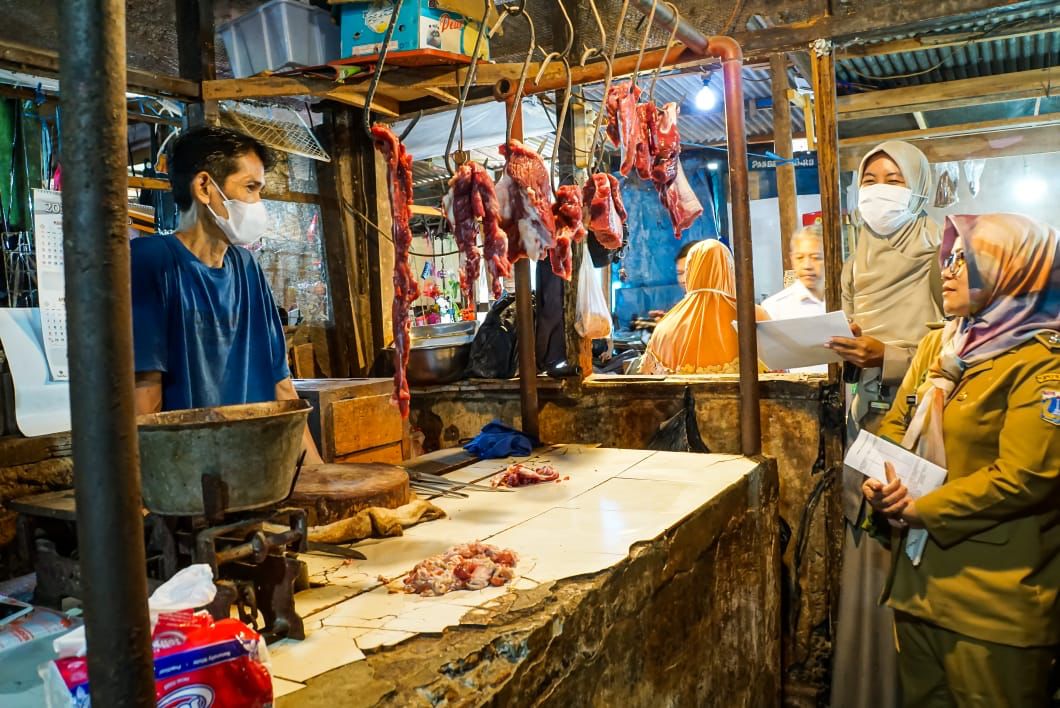Pengecekan keamanan serta ketersediaan daging ayam dan daging sapi di Pasar Timbul Kartini