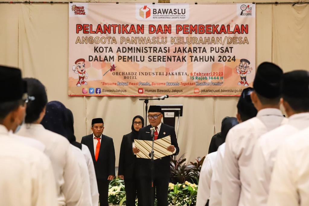 Wali Kota Administrasi Jakarta Pusat Dhany Sukma menghadiri pengukuhan panitia pengawas pemilu (panwaslu) tingkat kelurahan, di salah satu hotel wilayah Kemayoran, Jakarta Pusat, Senin (6/2) pagi.