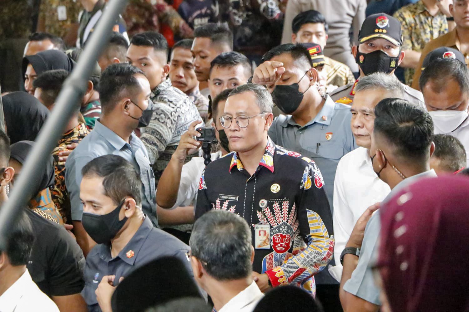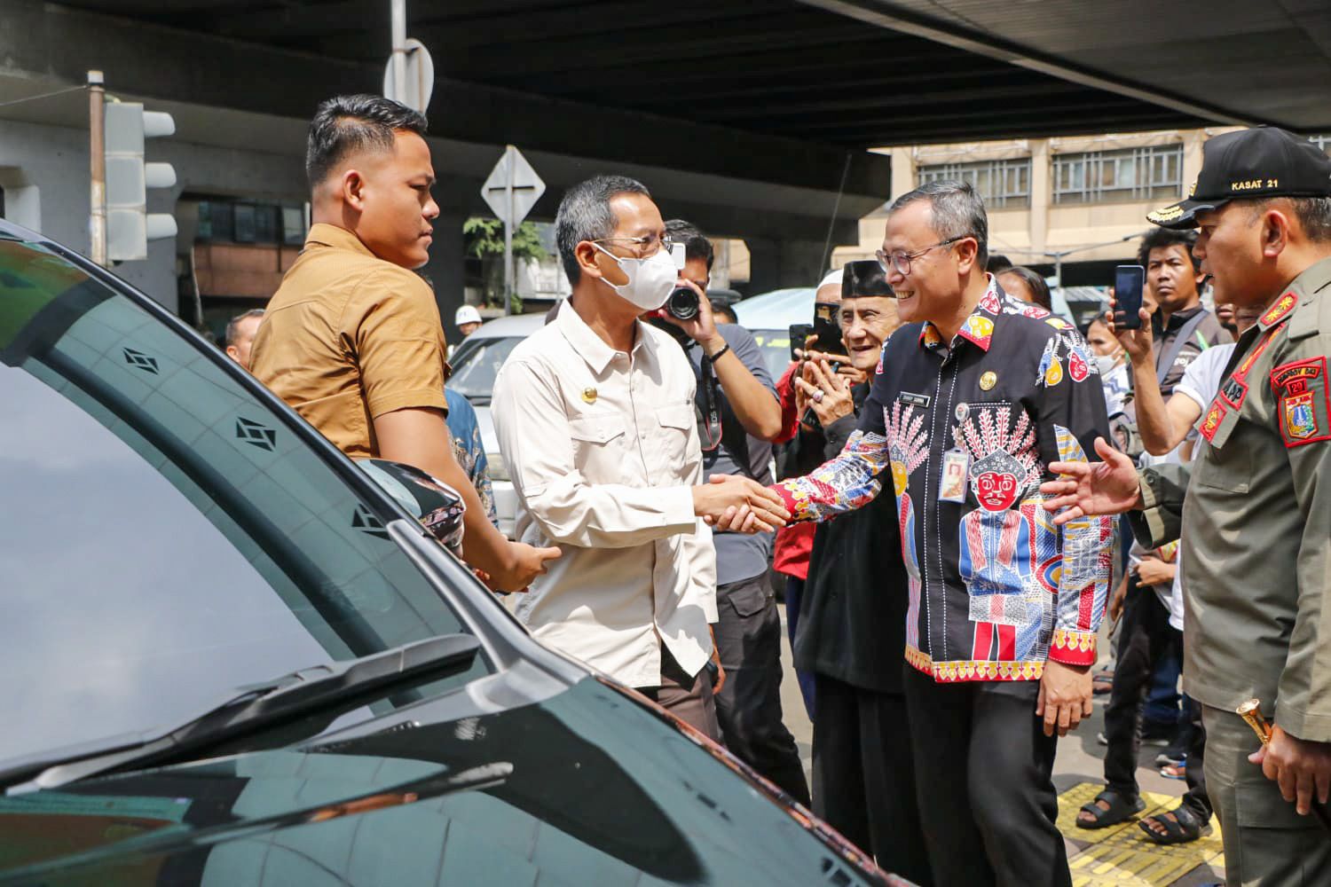 Wali Kota Administrasi Jakarta Pusat Dhany Sukma mendampingi Presiden Joko Widodo dan Penjabat (PJ) Gubernur DKI Jakarta Heru Budi Hartono meninjau Pasar Tanah Abang Blok A dan Blok B, Kamis (4/5).