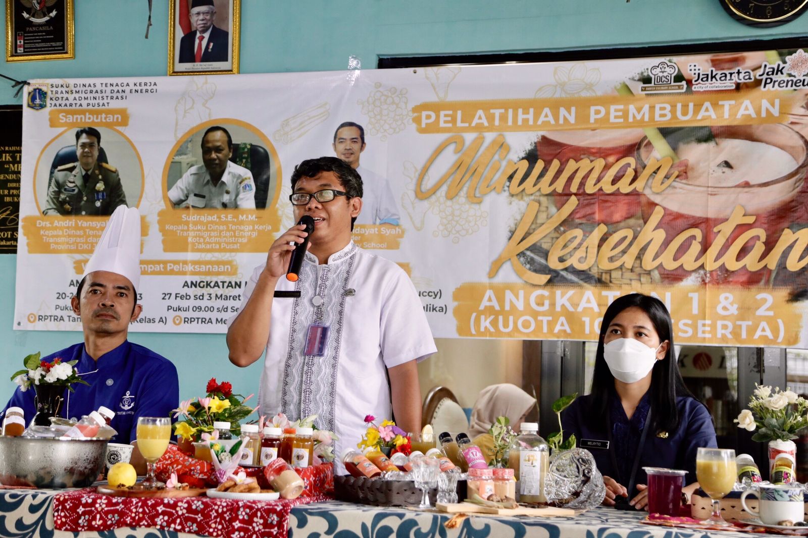 Suku Dinas Tenaga Kerja, Transmigrasi dan Energi (Nakertransgi) Kota Administrasi Jakarta Pusat menutup kegiatan pelatihan pembuatan minuman kesehatan angkatan 1 di RPTRA Melati 04, Kelurahan Bendungan Hilir, Jakarta Pusat, Jumat (24/2).