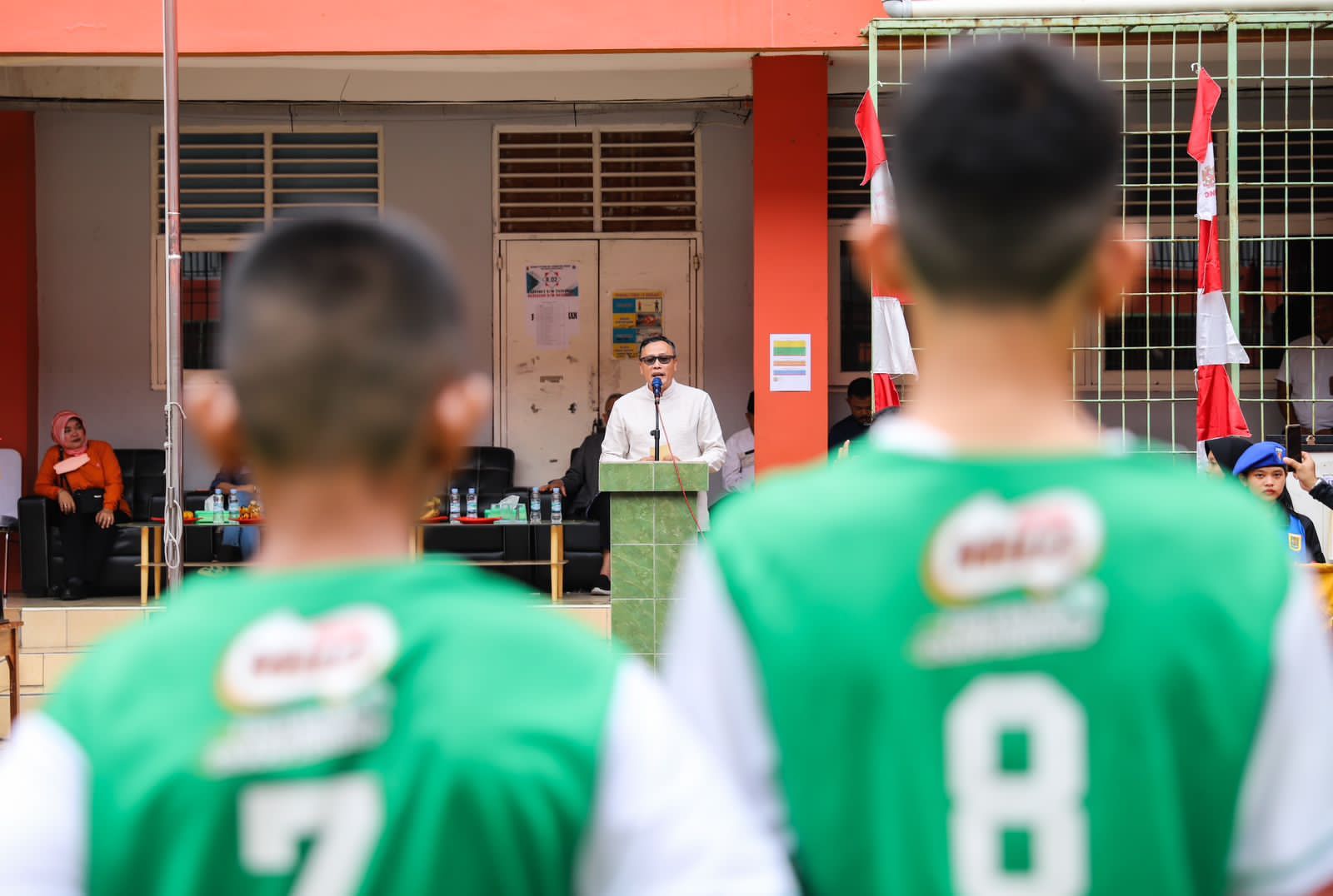 Wali Kota Administrasi Jakarta Pusat Dhany Sukma menghadiri acara penutupan sekaligus penyerahan piala bergilir kejuaraan Ksatrya Cup Futsal tingkat SD se-DKI Jakarta di Yayasan Perguruan Ksatrya Lima Satu, Kelurahan Cempaka Putih Barat, Kecamatan Cempaka Putih, Jumat (24/2).