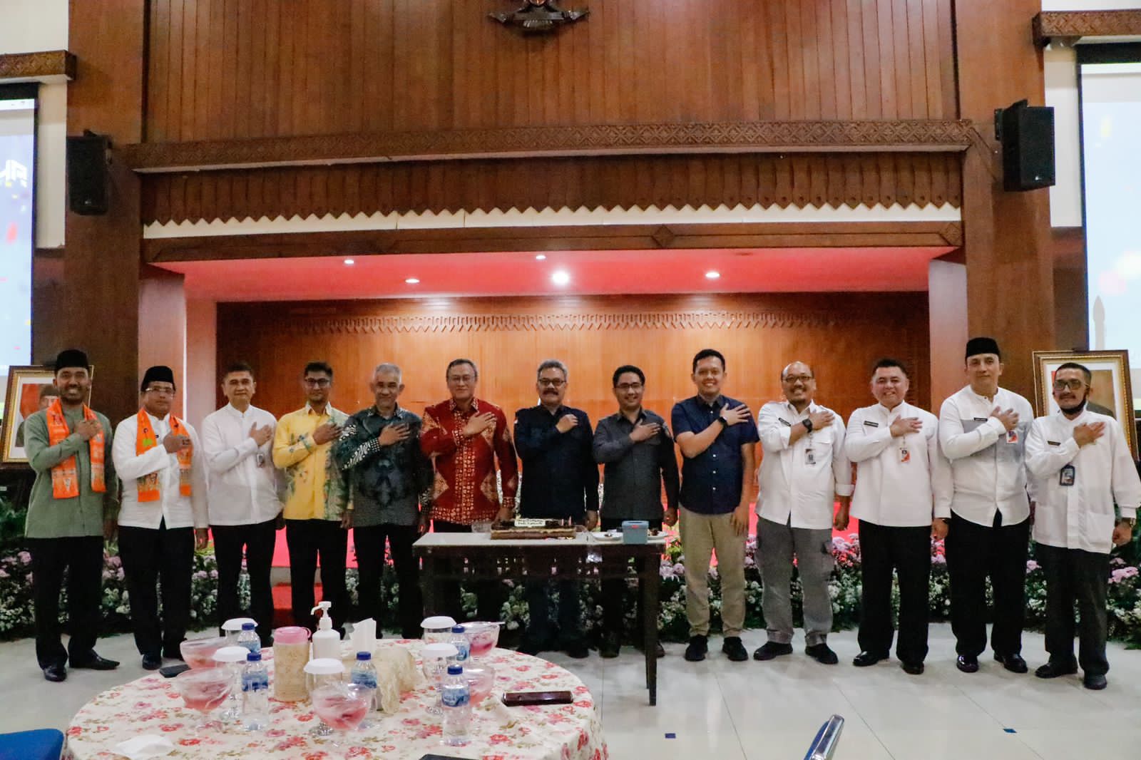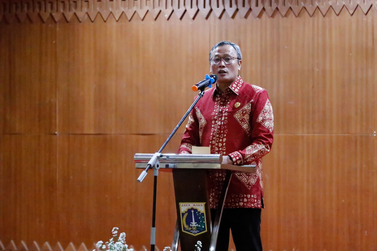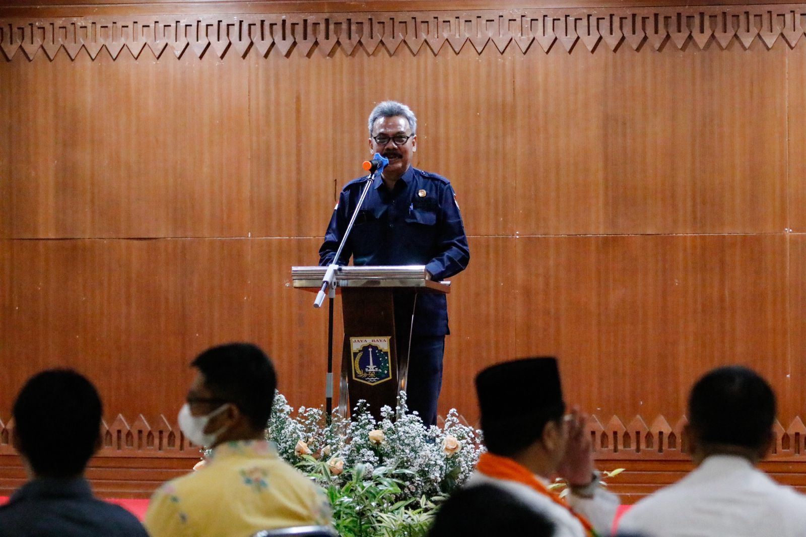 Wali Kota Administrasi Jakarta Pusat Dhany Sukma didampingi Ketua KPU Jakarta Pusat menyerahkan santunan kepada anggota Badan Adhoc Pemilu 2024 di Ruang Serbaguna Utama, Kantor Wali Kota Jakarta Pusat, Kamis (22/6).