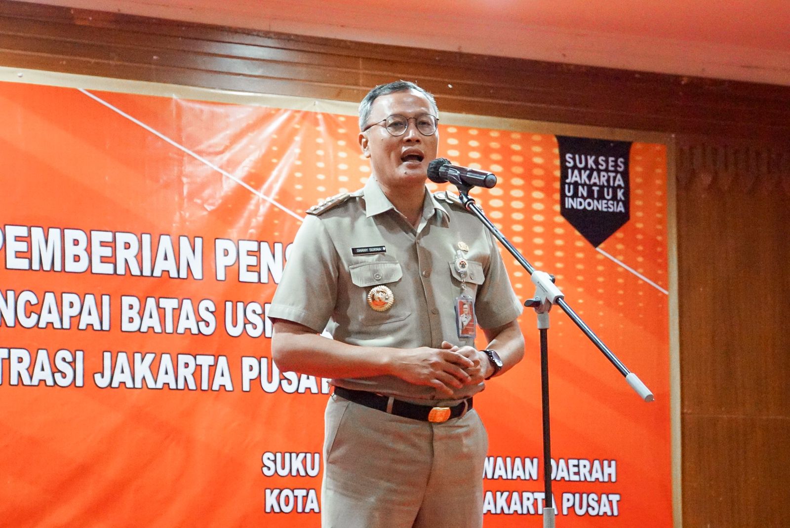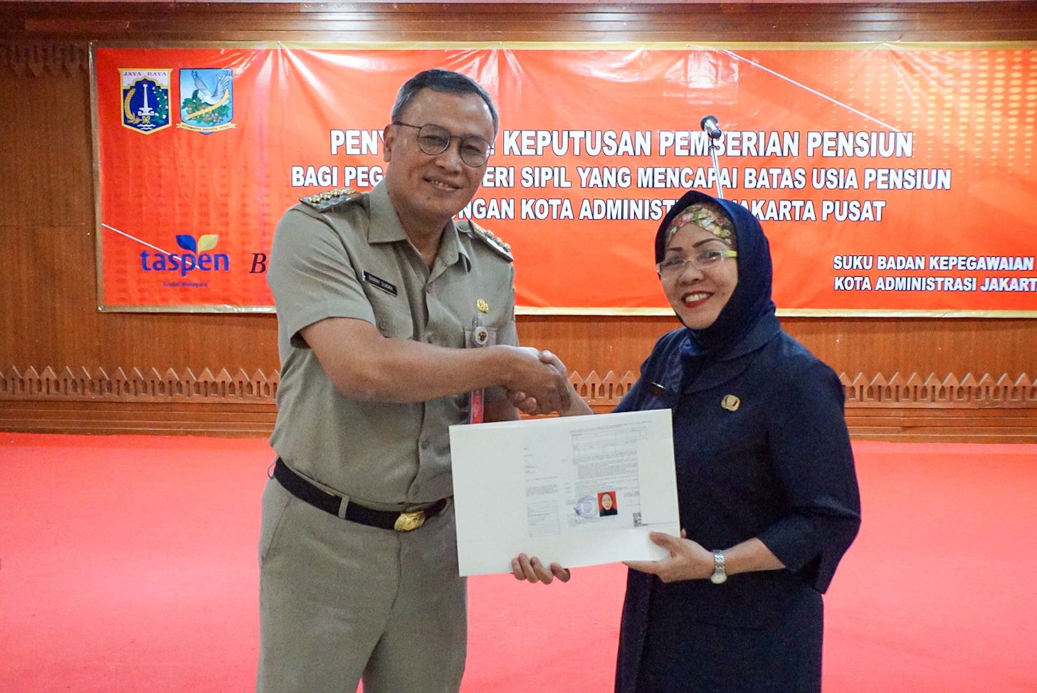 Penyerahan SK Pensiun tersebut secara langsung diserahkan oleh Wali Kota Administrasi Jakarta Pusat Dhany Sukma, di Ruang Serbaguna Utama, Kantor Wali Kota Jakarta Pusat, Jalan Tanah Abang I, Gambir, Selasa (27/6) pagi.