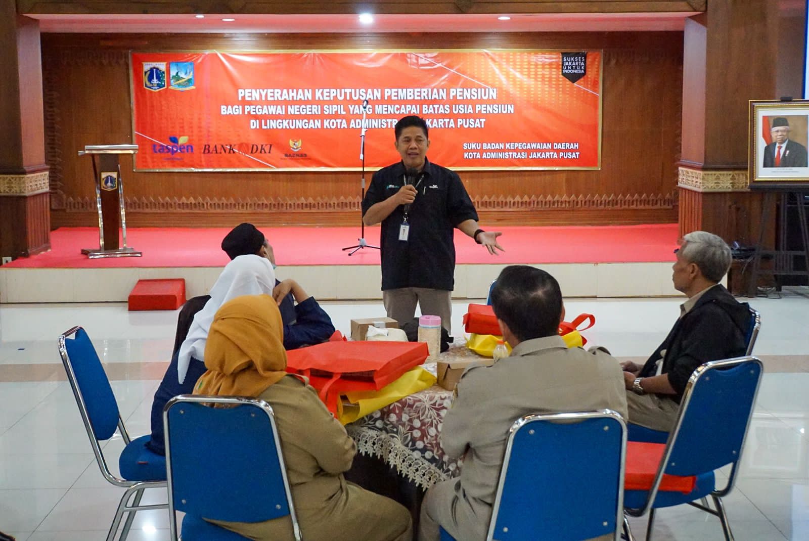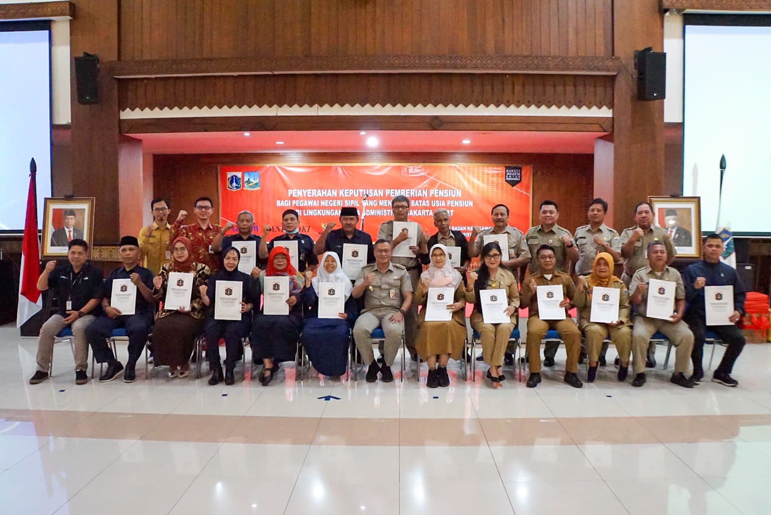 Pemerintah Kota (Pemkot) Administrasi Jakarta Pusat melalui Suku Badan Kepegawaian menyerahkan Surat Keputusan (SK) Pensiun kepada 18 Aparatur Sipil Negara (ASN) yang telah mencapai Batas Usia Pensiun (BUP) Terhitung Mulai Tanggal (TMT) 1 Juli 2023.