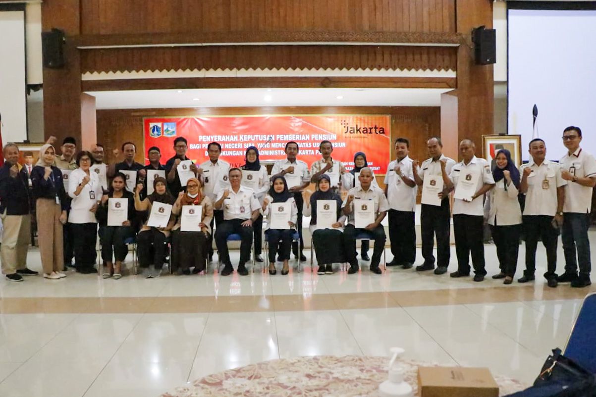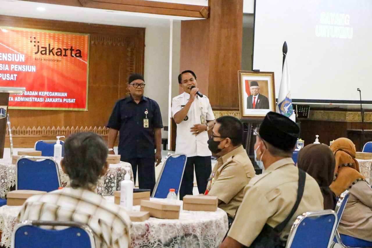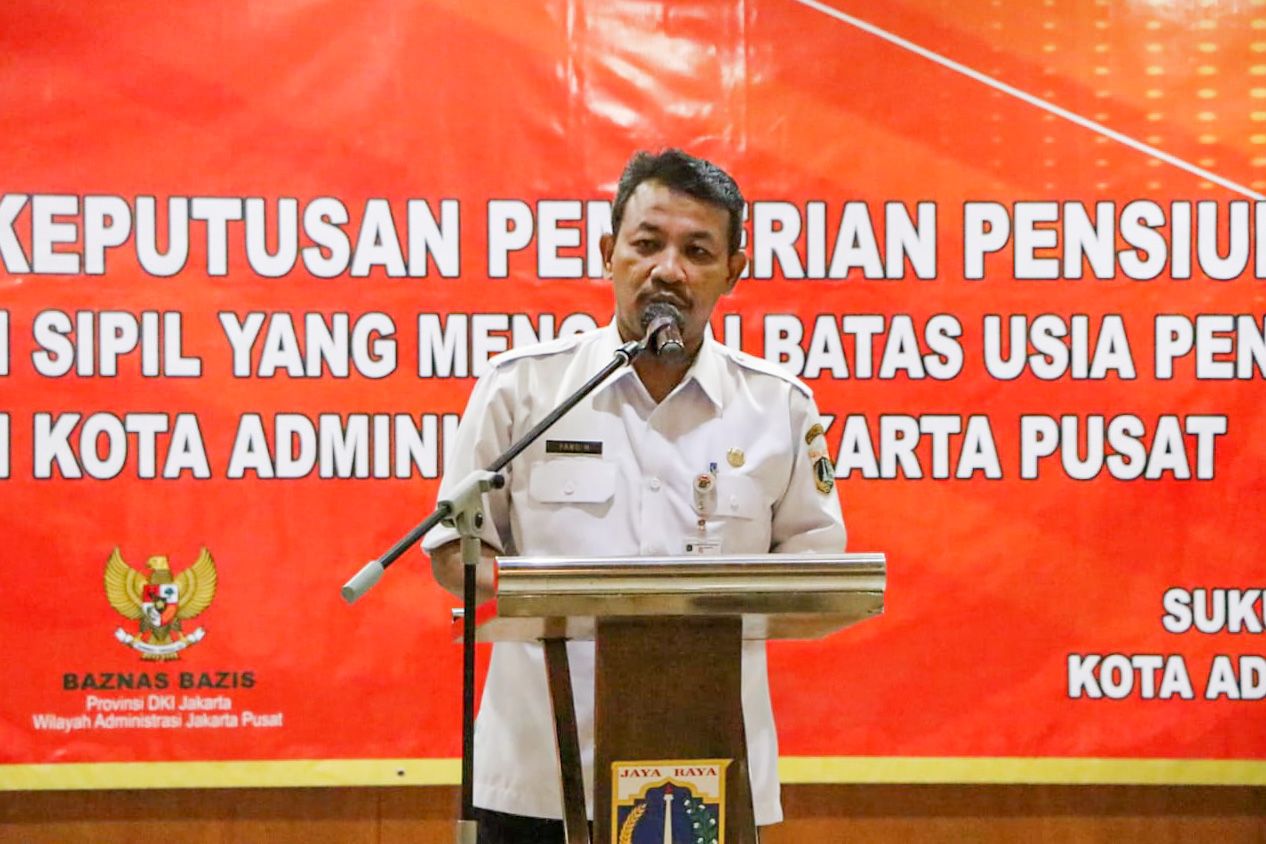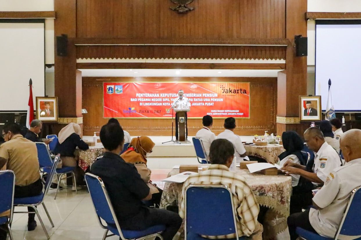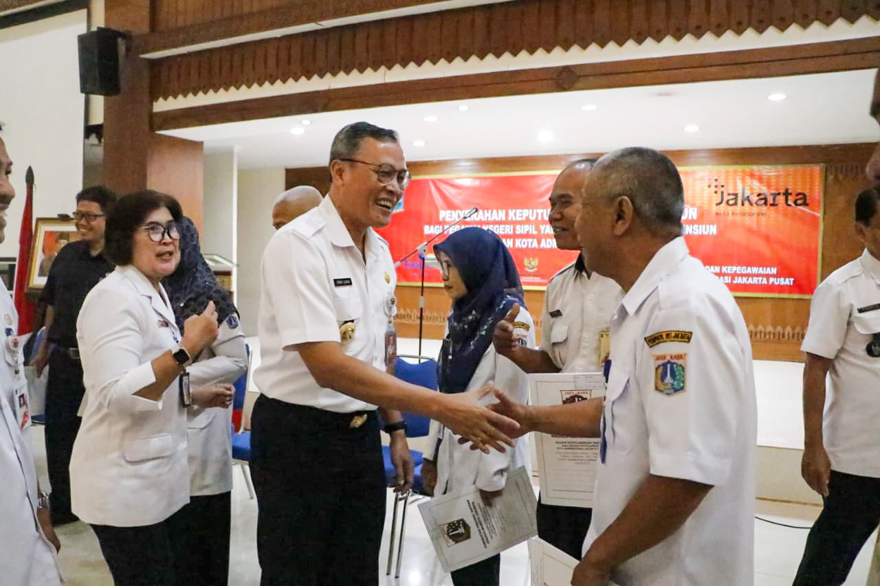 Pemerintah Kota Administrasi Jakarta Pusat melalui Suku Badan Kepegawaian menyerahkan surat keputusan pemberian pensiun bagi Aparatur Sipil Negara (ASN) yang telah mencapai Batas Usia Pensiun (BUP) Terhitung Mulai Tanggal (TMT) 1 Mei 2023.