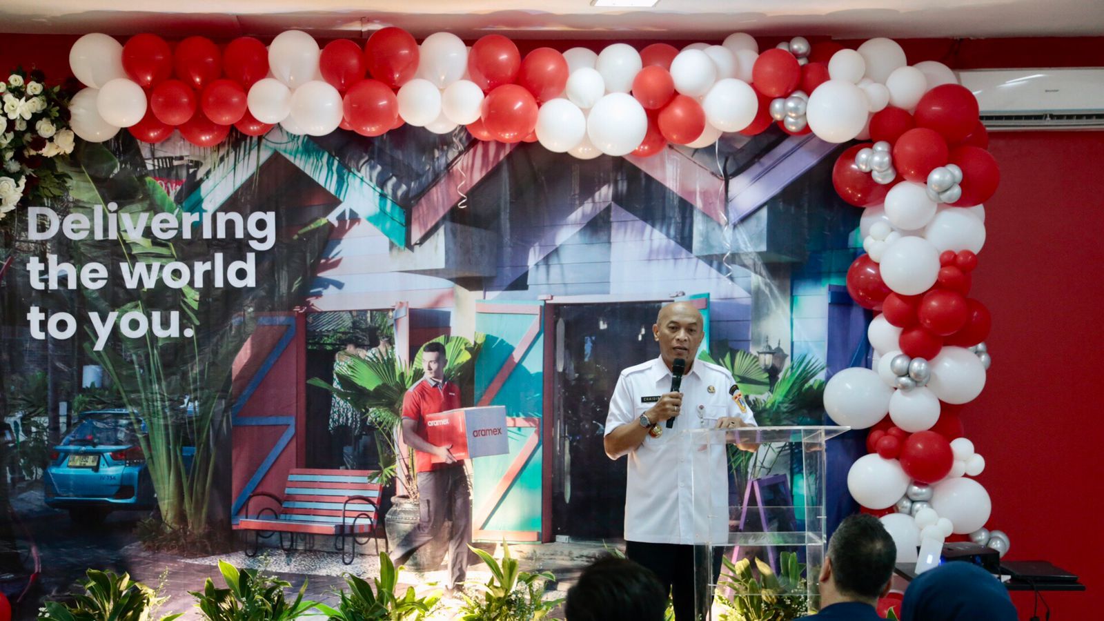 Wakil Wali Kota (Wawali) Administrasi Jakarta Pusat Chaidir menghadiri peresmian kantor ekspedisi yaitu, Aramex di Jalan Penjernihan 1, Kelurahan Bendungan Hilir, Kecamatan Tanah Abang, Rabu (26/7).