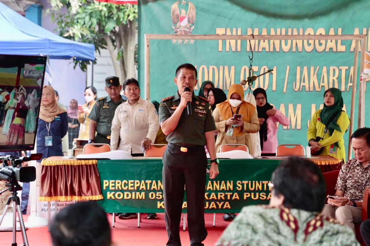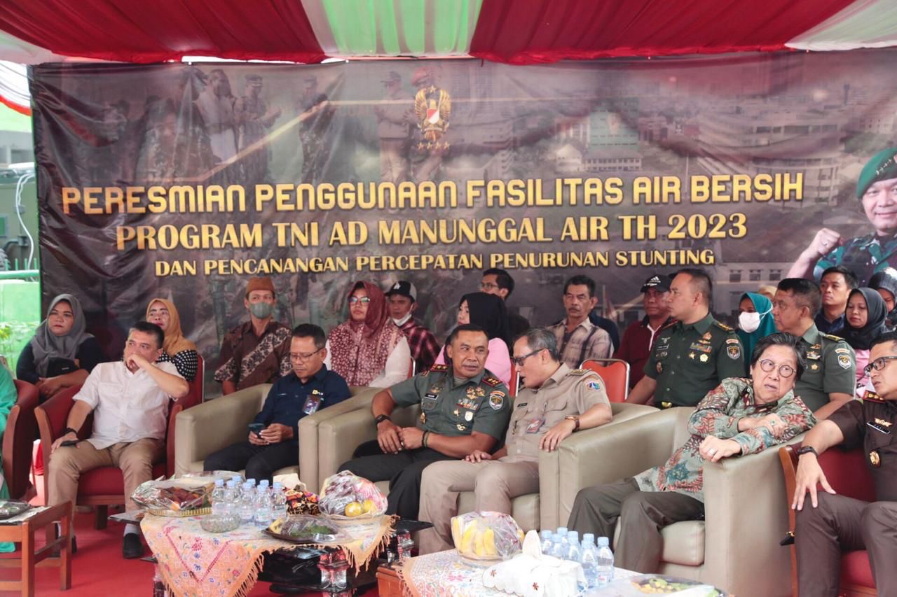 Wali Kota Administrasi Jakarta Pusat Dhany Sukma menghadiri peresmian penggunaan fasilitas air bersih program TNI Angkatan Darat (AD) Manunggal Tahun 2023 dan pencanangan percepatan penurunan stunting di Rumah Susun (Rusun) Petamburan, Tanah Abang, Selasa (25/7).