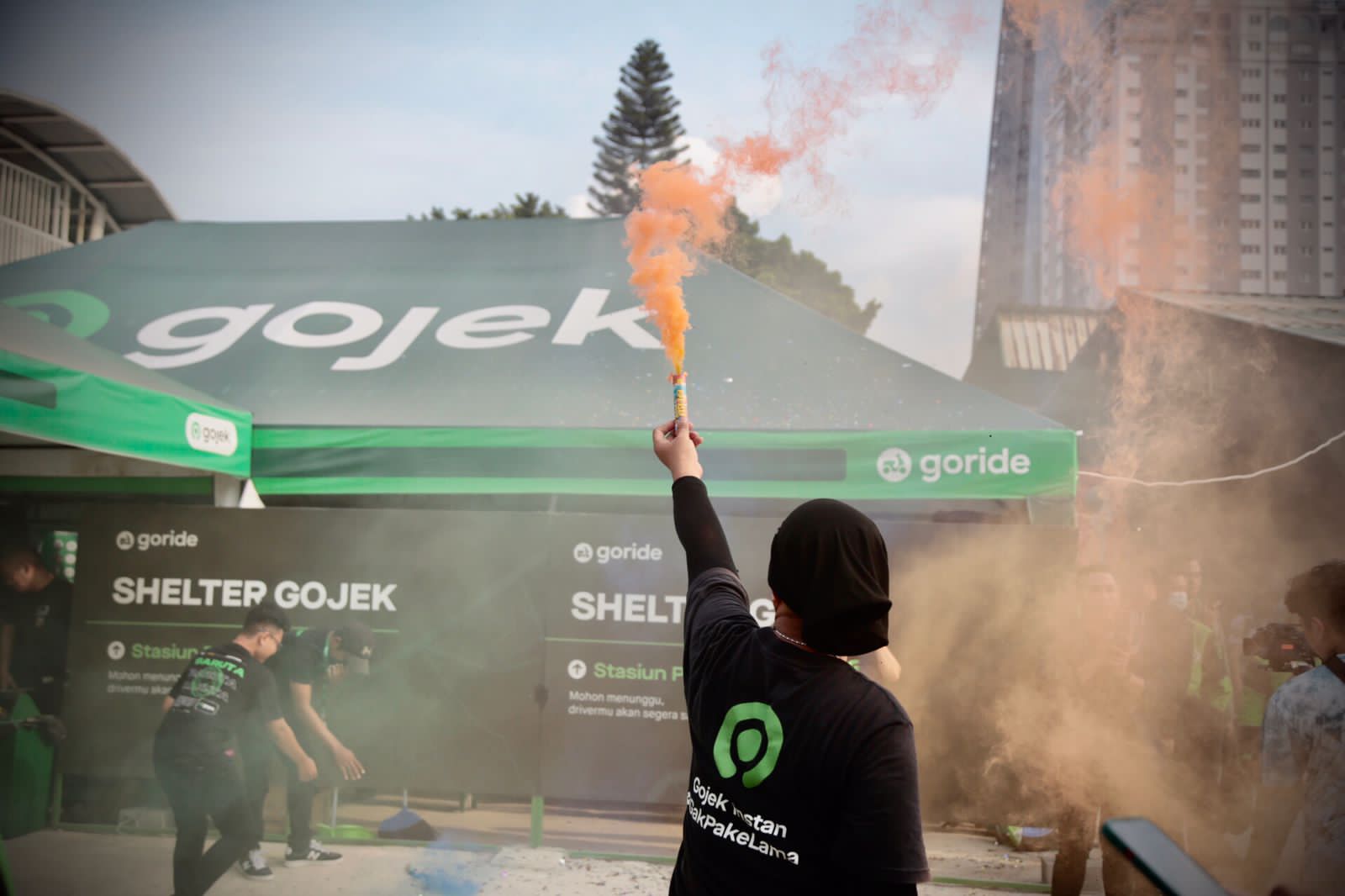 Peresmian shelter mitra Gojek di sisi barat Stasiun Palmerah