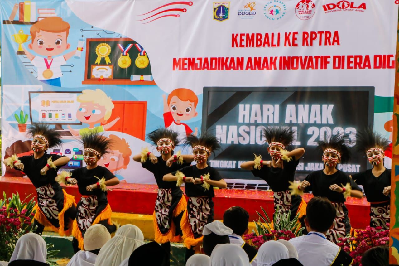 Pemerintah Kota (Pemkot) Administrasi Jakarta Pusat menggelar acara peringatan Hari Anak Nasional (HAN) ke-39 di Ruang Publik Terpadu Ramah Anak (RPTRA) Borobudur, Kelurahan Pegangsaan, Kecamatan Menteng, Jumat (28/7).