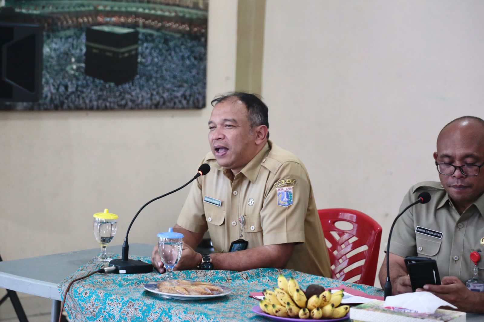 Asisten Perekonomian dan Pembangunan Setko Administrasi Jakarta Pusat Bakwan Ferizan Ginting memimpin kegiatan persiapan paparan pada ajang Proklim Lestari yang berlangsung di RW 02 Rawasari, Cempaka Putih, Jakarta Pusat, Selasa (18/7).