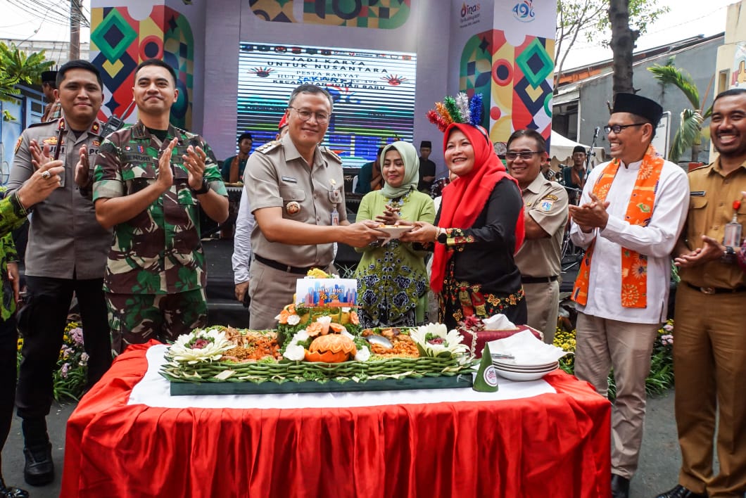 Wali Kota Administrasi Jakarta Pusat Dhany Sukma membuka Pesta Rakyat Kecamatan Johar Baru yang berlangsung di depan Kantor Kecamatan Johar Baru, Jakarta Pusat, Selasa (27/6).