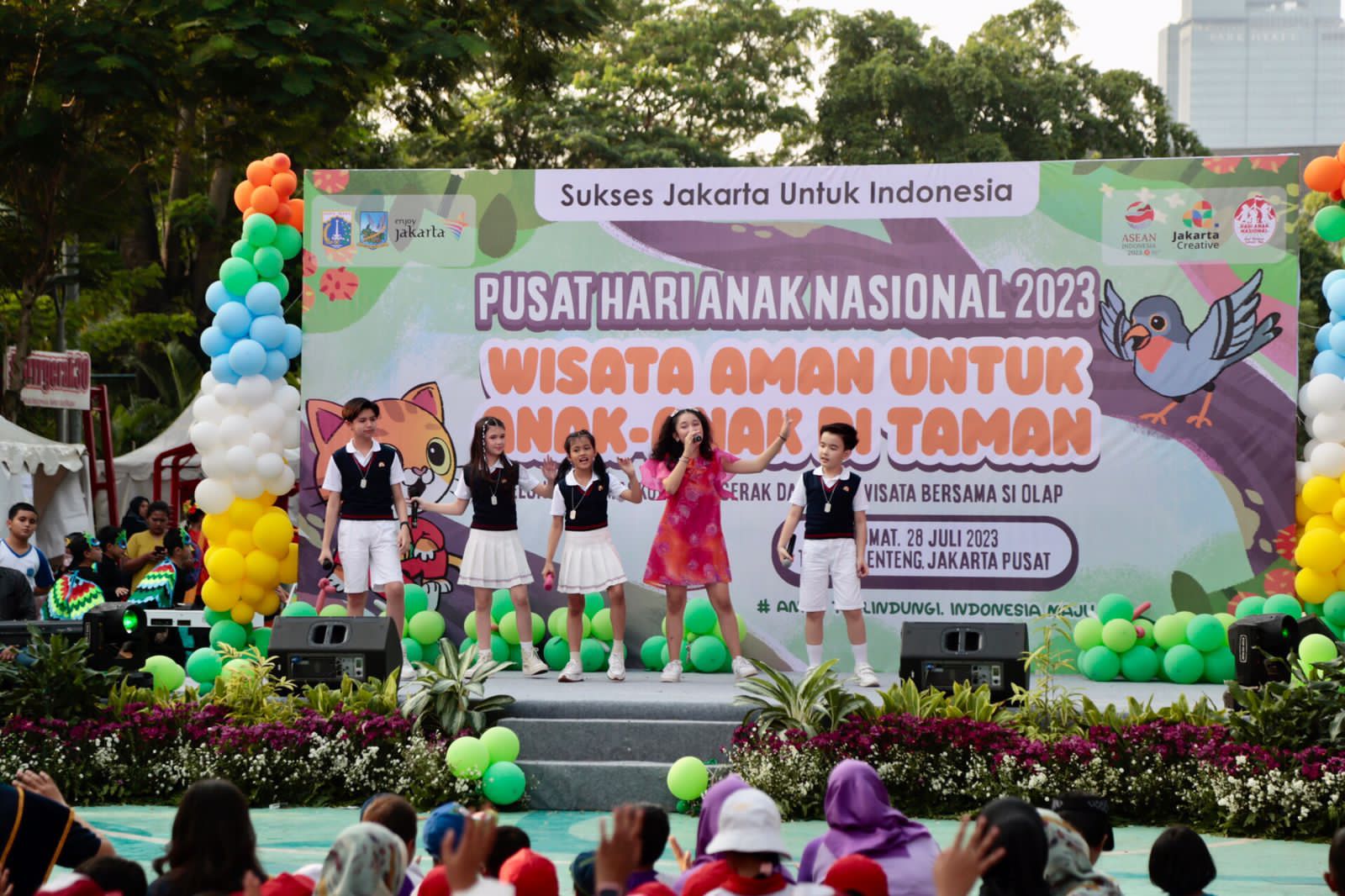 Suku Dinas Pariwisata dan Ekonomi Kreatif (Parekraf) Kota Administrasi Jakarta Pusat menyelenggarakan Pusat Hari Anak Nasional dengan kegiatan Atraksi Seni Kreatif di Ruang Publik yang berlangsung di Taman Menteng, Jakarta Pusat, pada Jumat (28/7) kemarin.