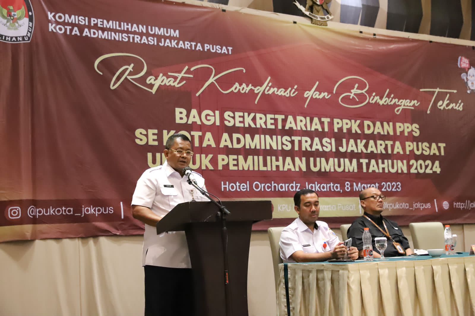 Sekretaris Kota Administrasi Jakarta Pusat Iqbal Akbarudin membuka rapat koordinasi dan bimbingan teknis bagi Sekretariat Panitia Pemilihan Kecamatan (PPK) dan Panitia Pemungutan Suara (PPS) se-Jakarta Pusat di salah satu hotel kawasan Gunung Sahari Utara, Kecamatan Sawah Besar, Rabu (8/3).
