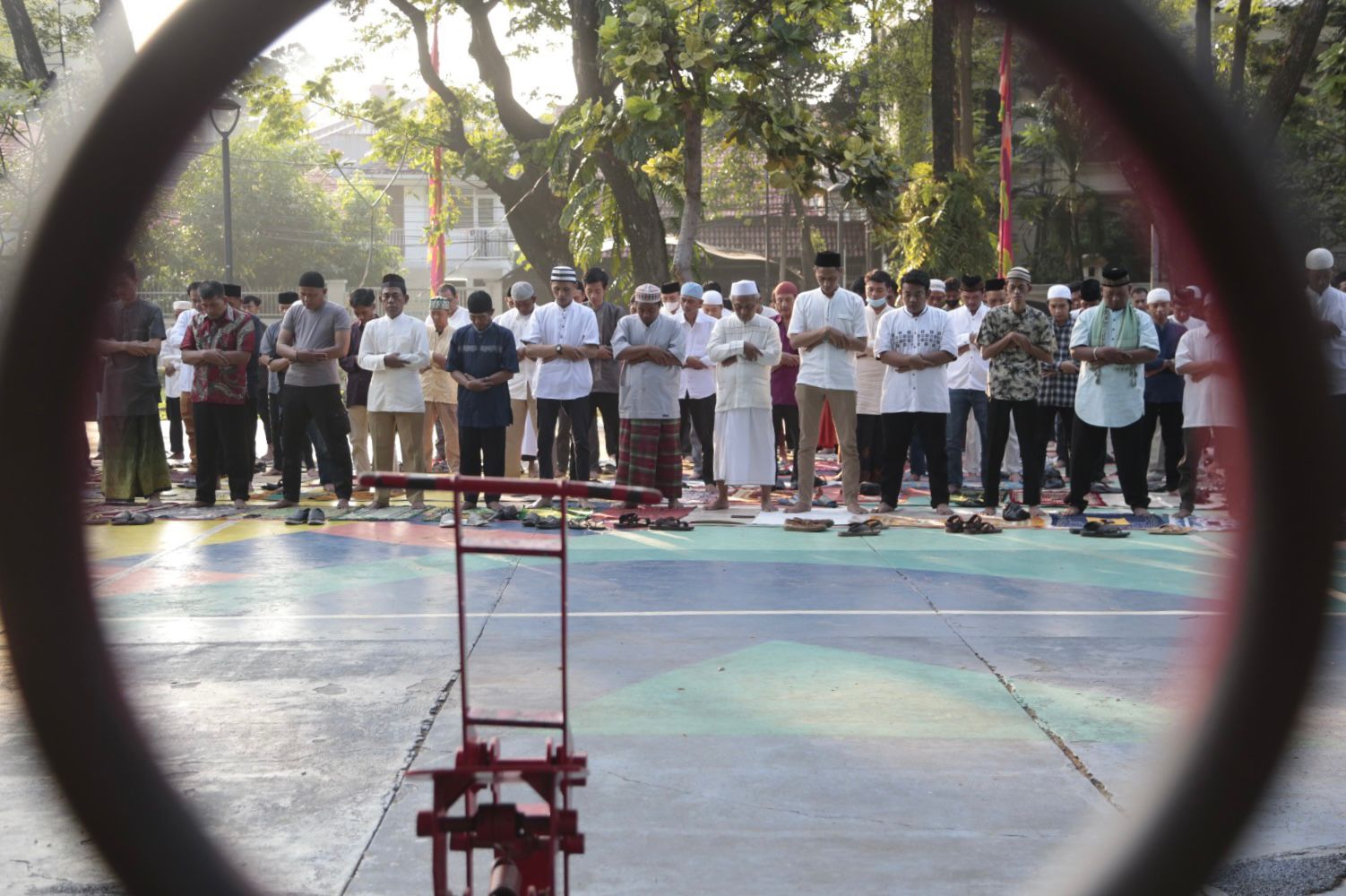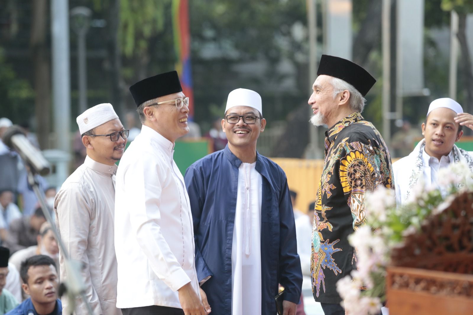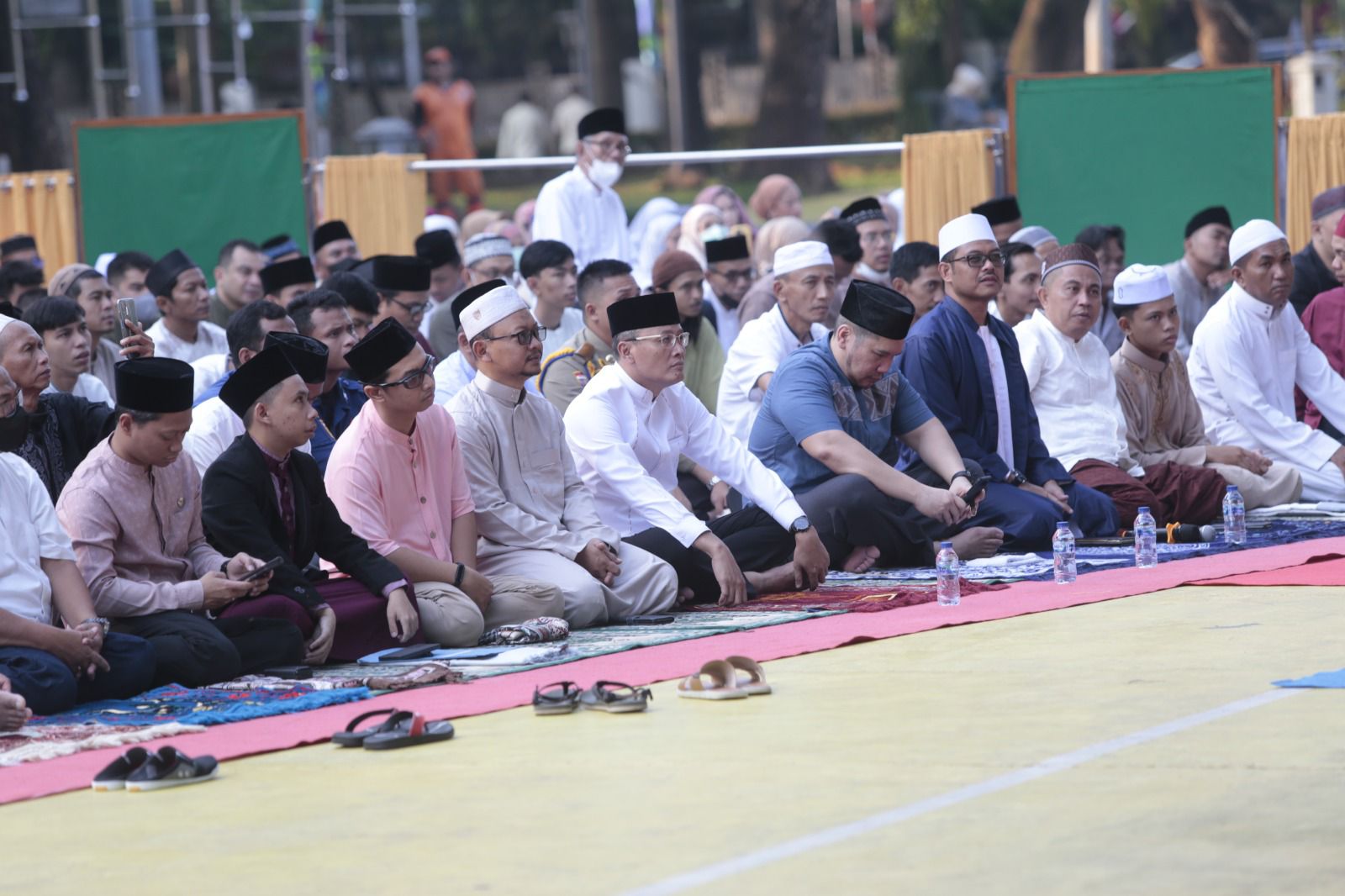 Pemerintah Kota (Pemkot) Administrasi Jakarta Pusat menggelar Salat Idulfitri 1444 Hijriah, di Taman Menteng, Kecamatan Menteng, Jakarta Pusat, Sabtu (22/4).