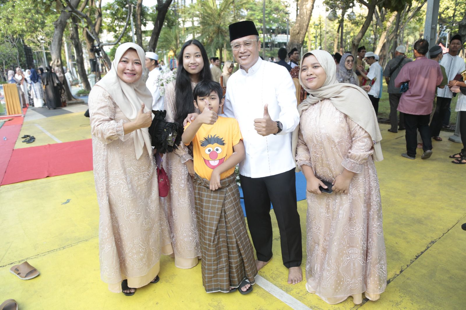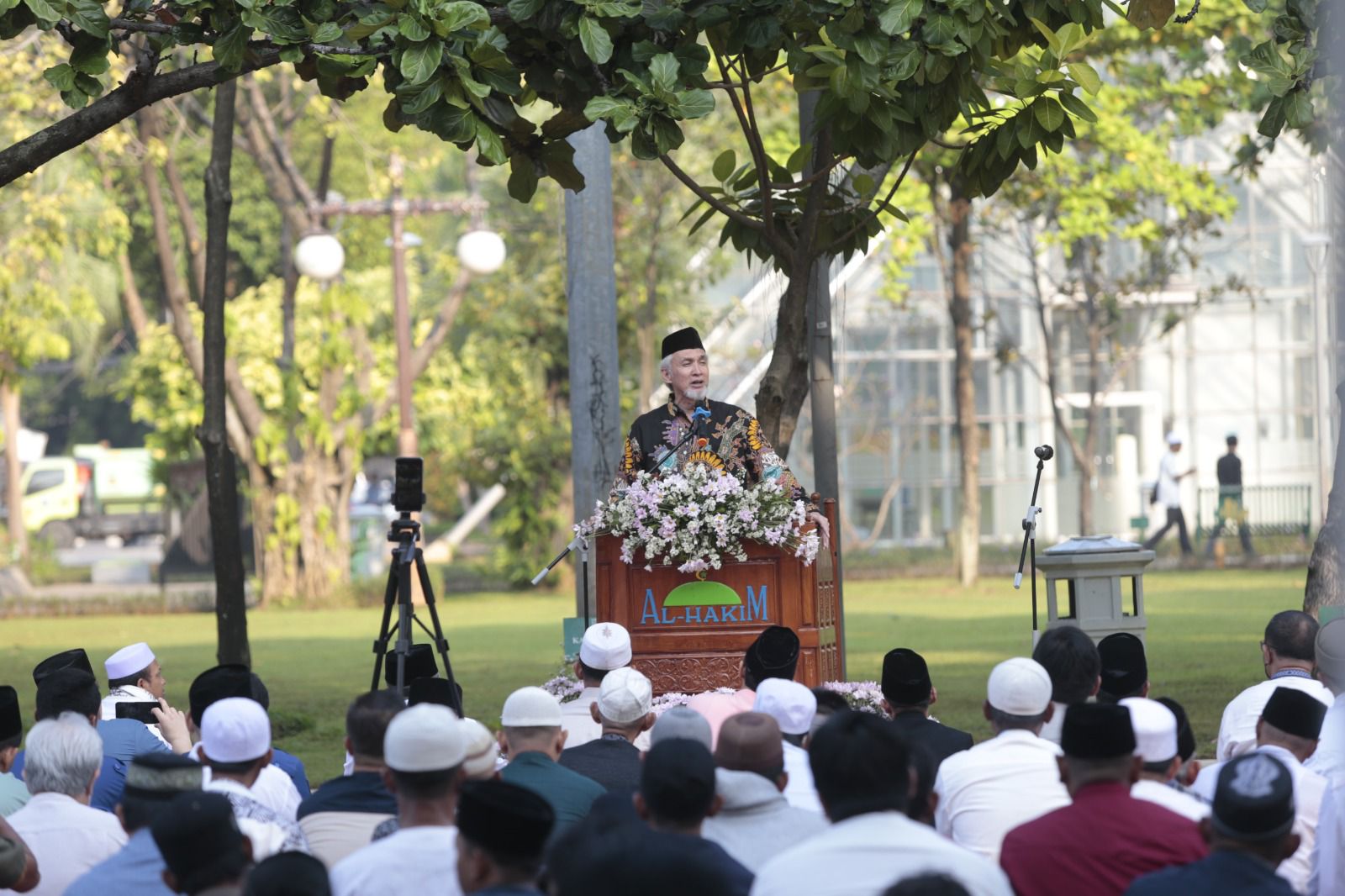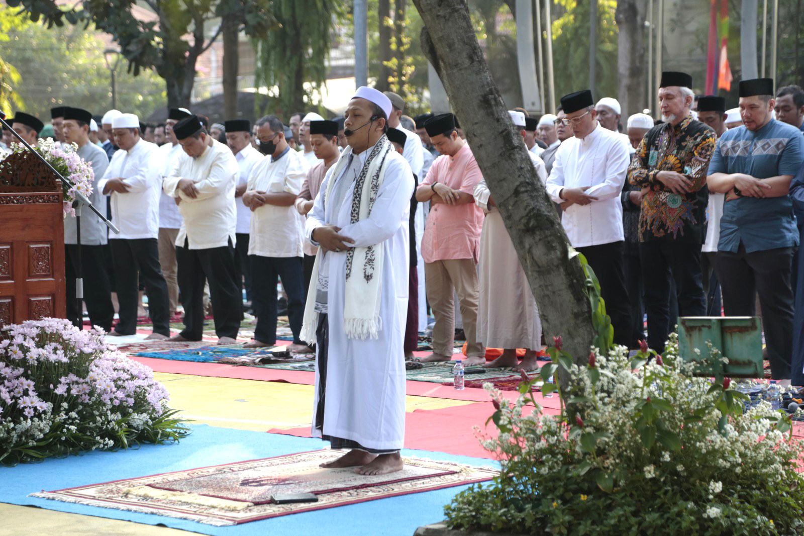 Pemerintah Kota (Pemkot) Administrasi Jakarta Pusat menggelar Salat Idulfitri 1444 Hijriah, di Taman Menteng, Kecamatan Menteng, Jakarta Pusat, Sabtu (22/4).