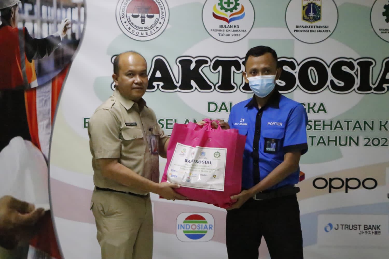 Suku Dinas Tenaga Kerja, Transmigrasi (Nakertrans) dan Energi Kota Administrasi Jakarta Pusat menggelar bakti sosial bulan Keselamatan dan Kesehatan Kerja (K3) Provinsi DKI Jakarta Tahun 2023 dengan memberikan Kartu BPJS Ketenagakerjaan dan paket sembako kepada 235 Porter Stasiun Gambir.