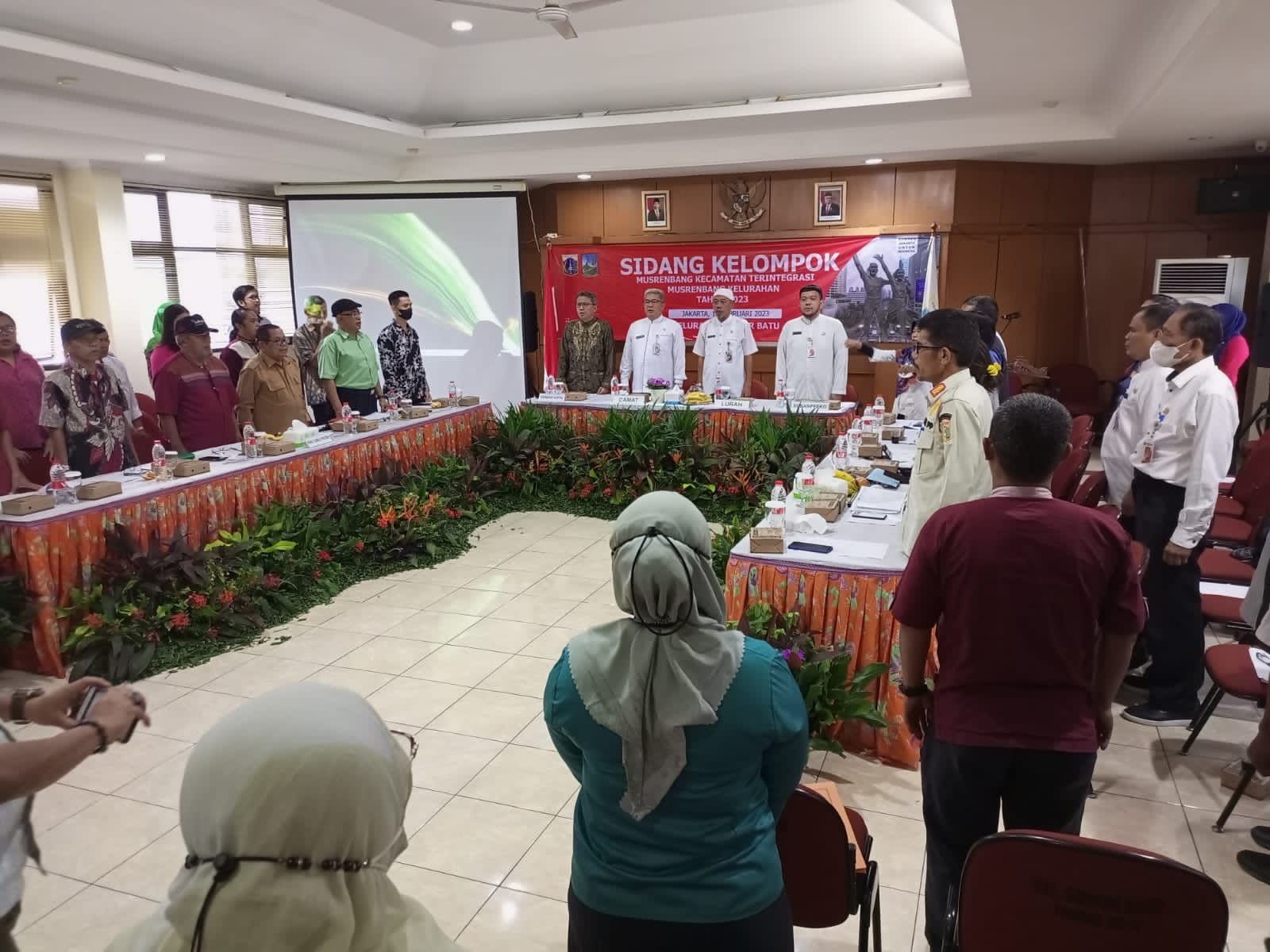 Sidang kelompok musyawarah perencanaan pembangunan (musrenbang) terintergrasi kecamatan Tahun 2023 berlangsung di Ruang Aula, Kantor Kelurahan Sumur Batu, Lantai 4, Kecamatan Kemayoran, Jakarta Pusat, Jumat (17/2).