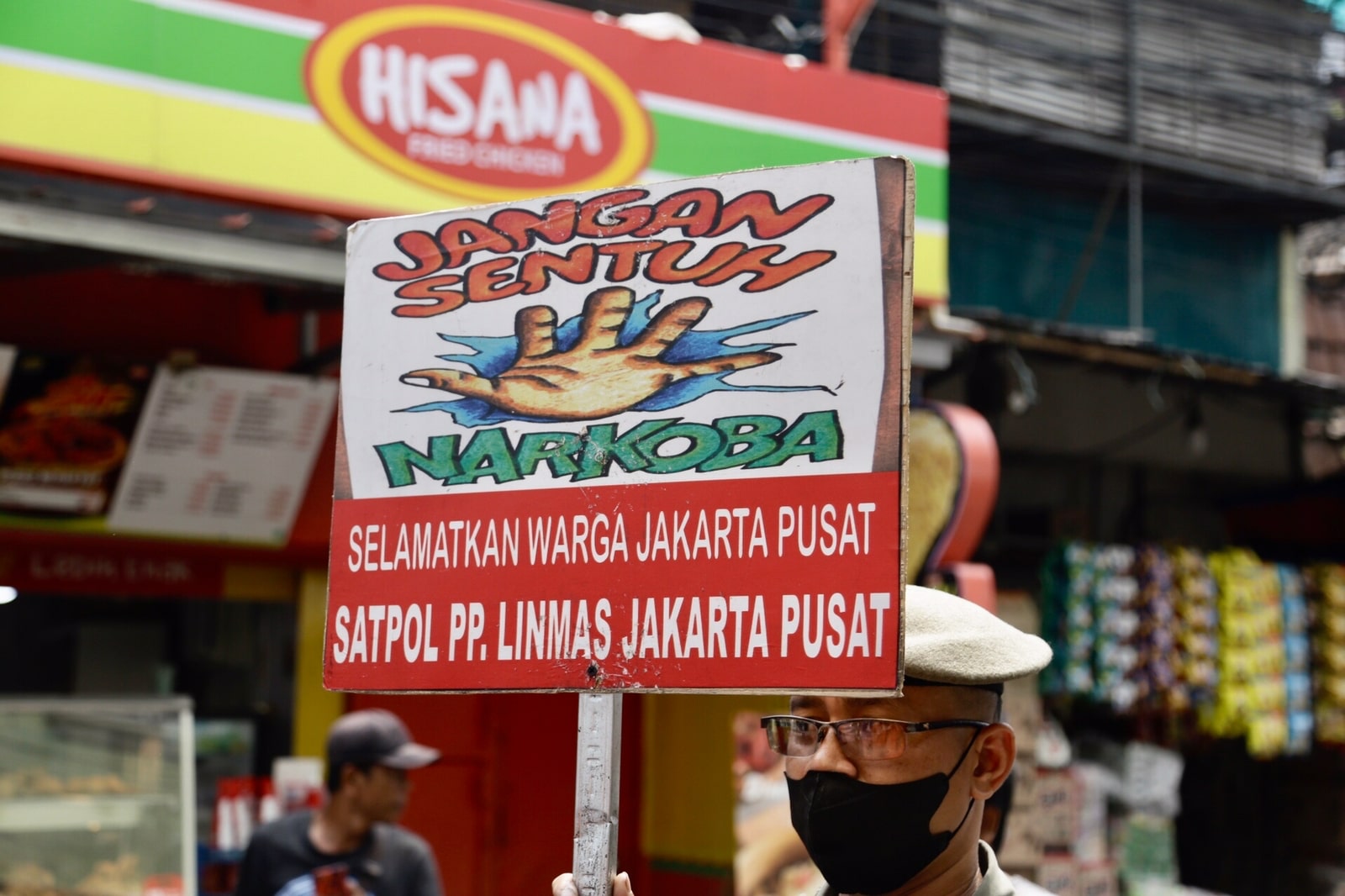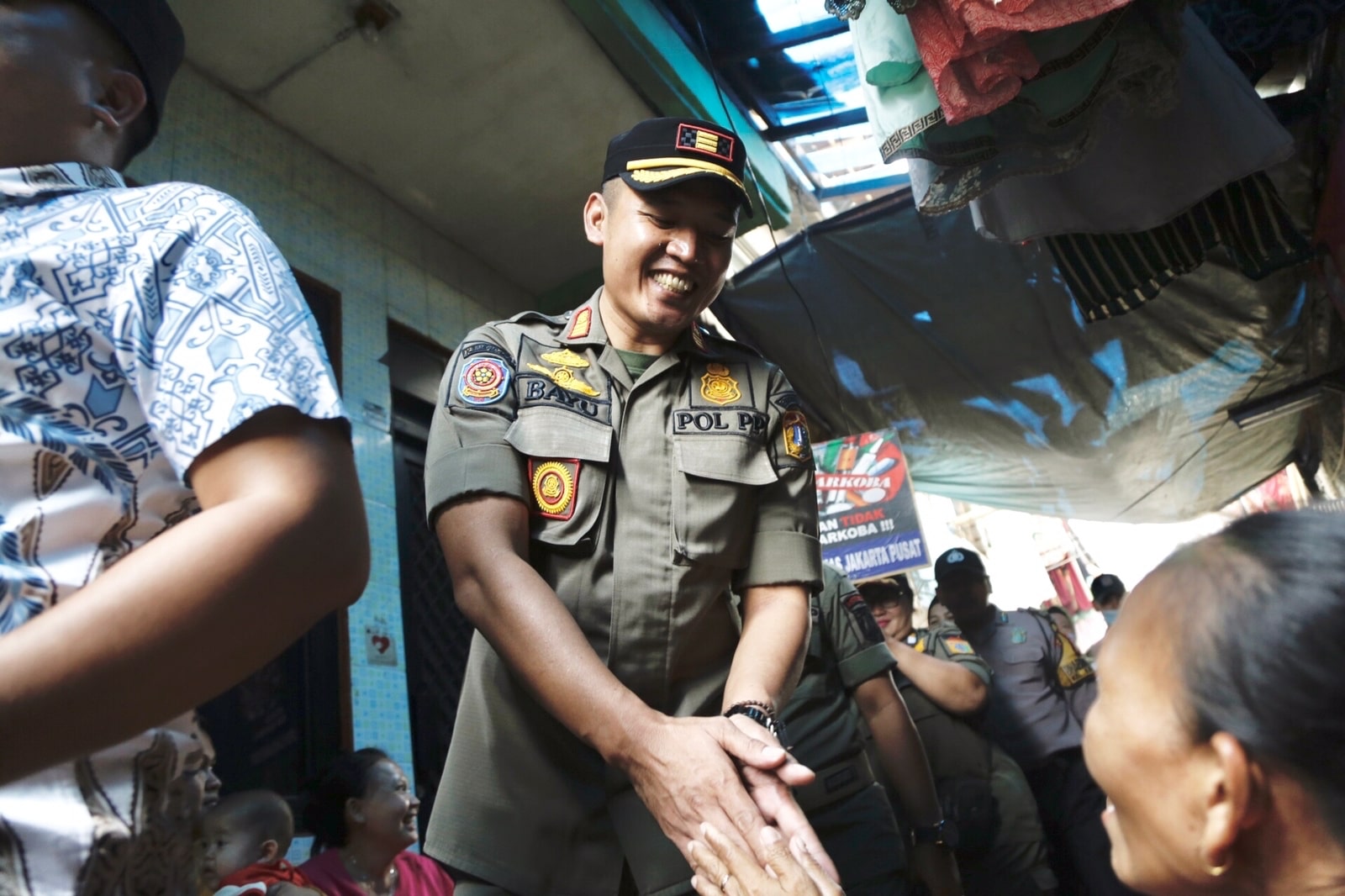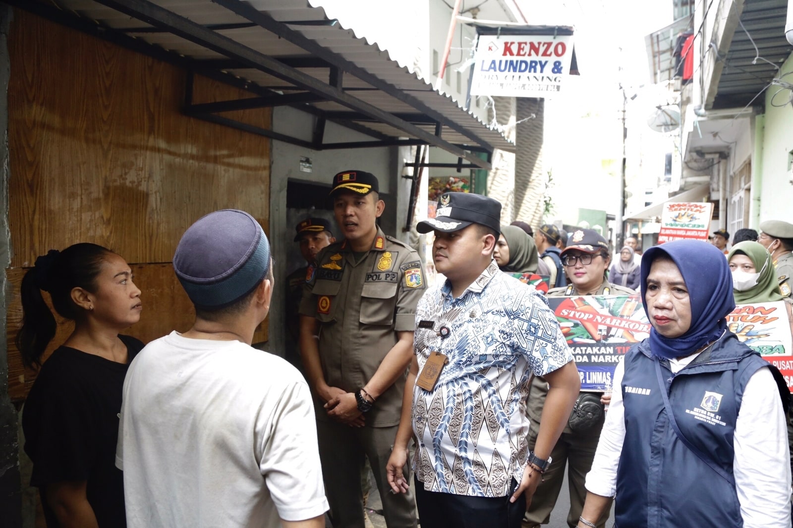 Satpol PP Kota Administrasi Jakarta Pusat melakukan sosialisasi serta edukasi terhadap bahaya narkoba di RW 01 Kelurahan Karang Anyar, Jakarta Pusat, Kamis (12/1).