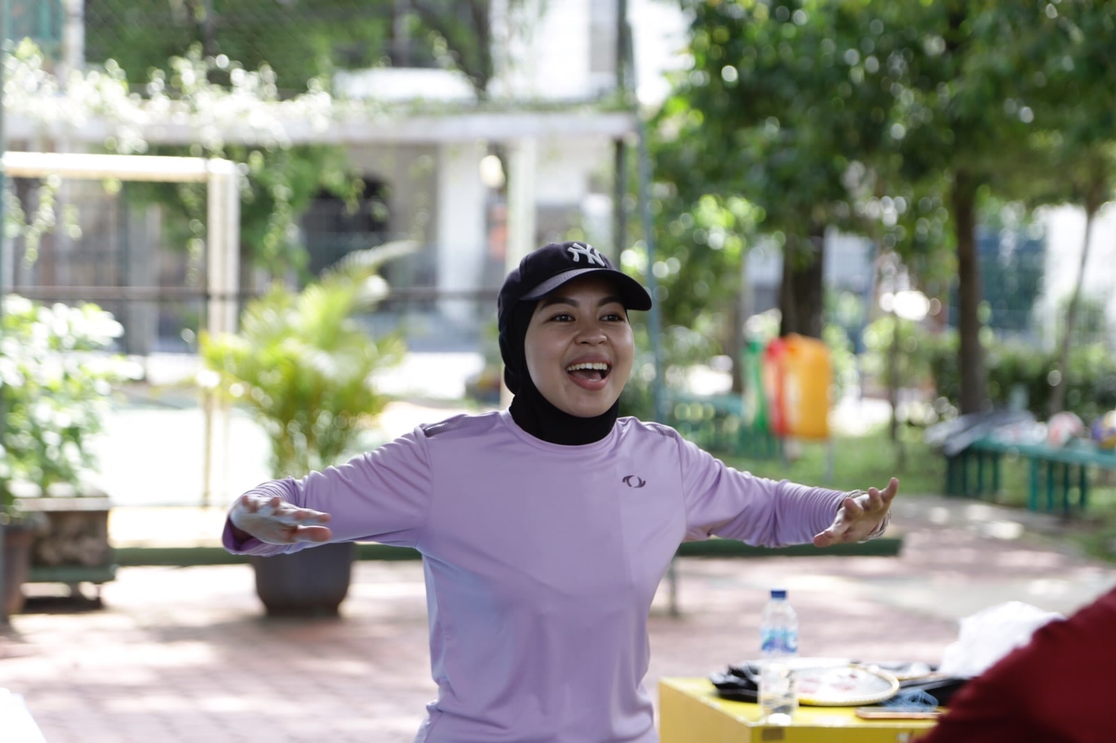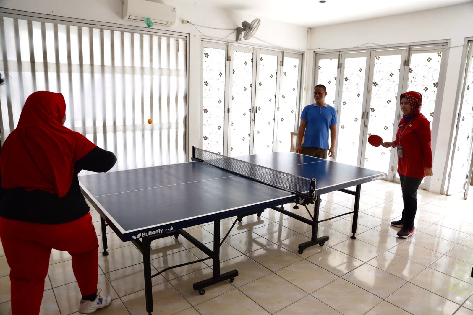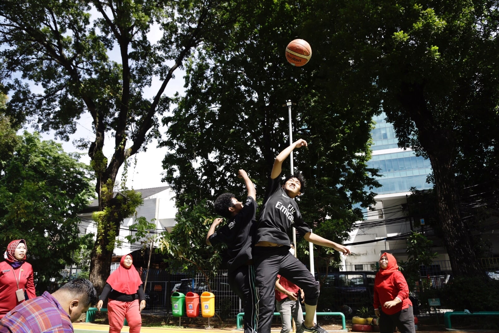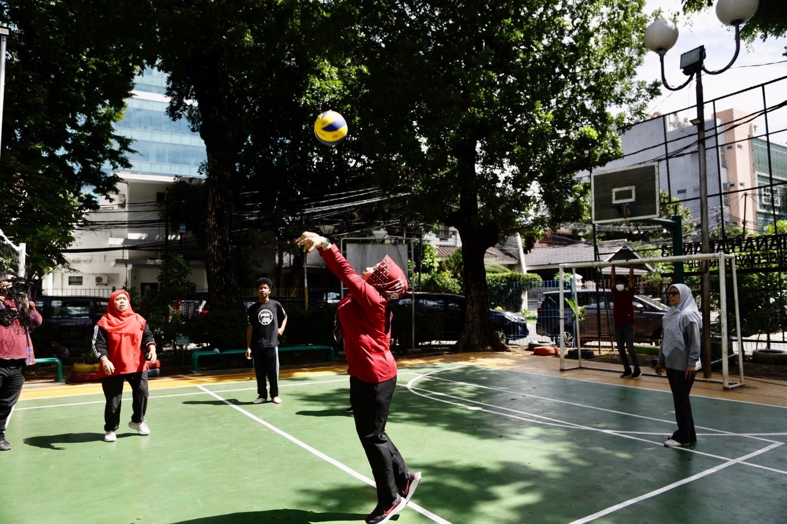 Jajaran Kelurahan Petojo Selatan melakukan olahraga bersama sekaligus sosialisasi fasilitas, di Ruang Publik Terpadu Ramah Anak (RPTRA) Tanah Abang 3, Kecamatan Gambir, Jakarta Pusat, Jumat (6/1).