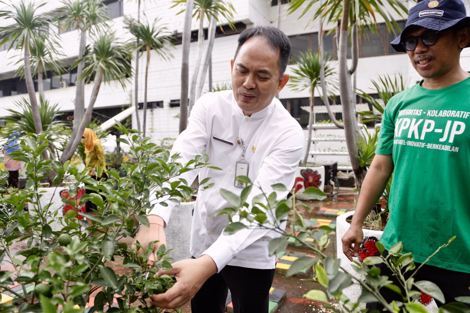 Sudin KPKP Panen Sayuran di Rooftop Kantor Wali Kota