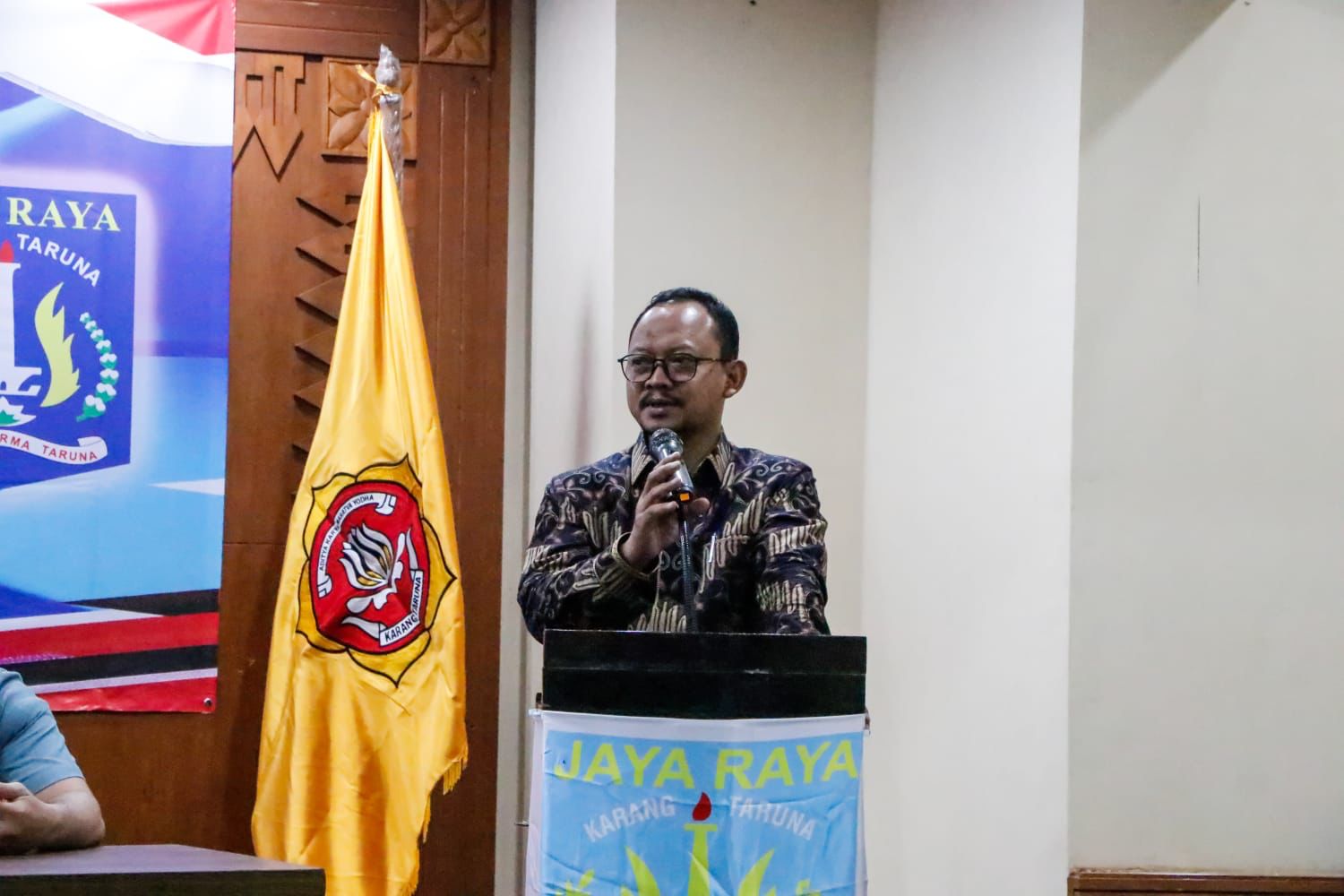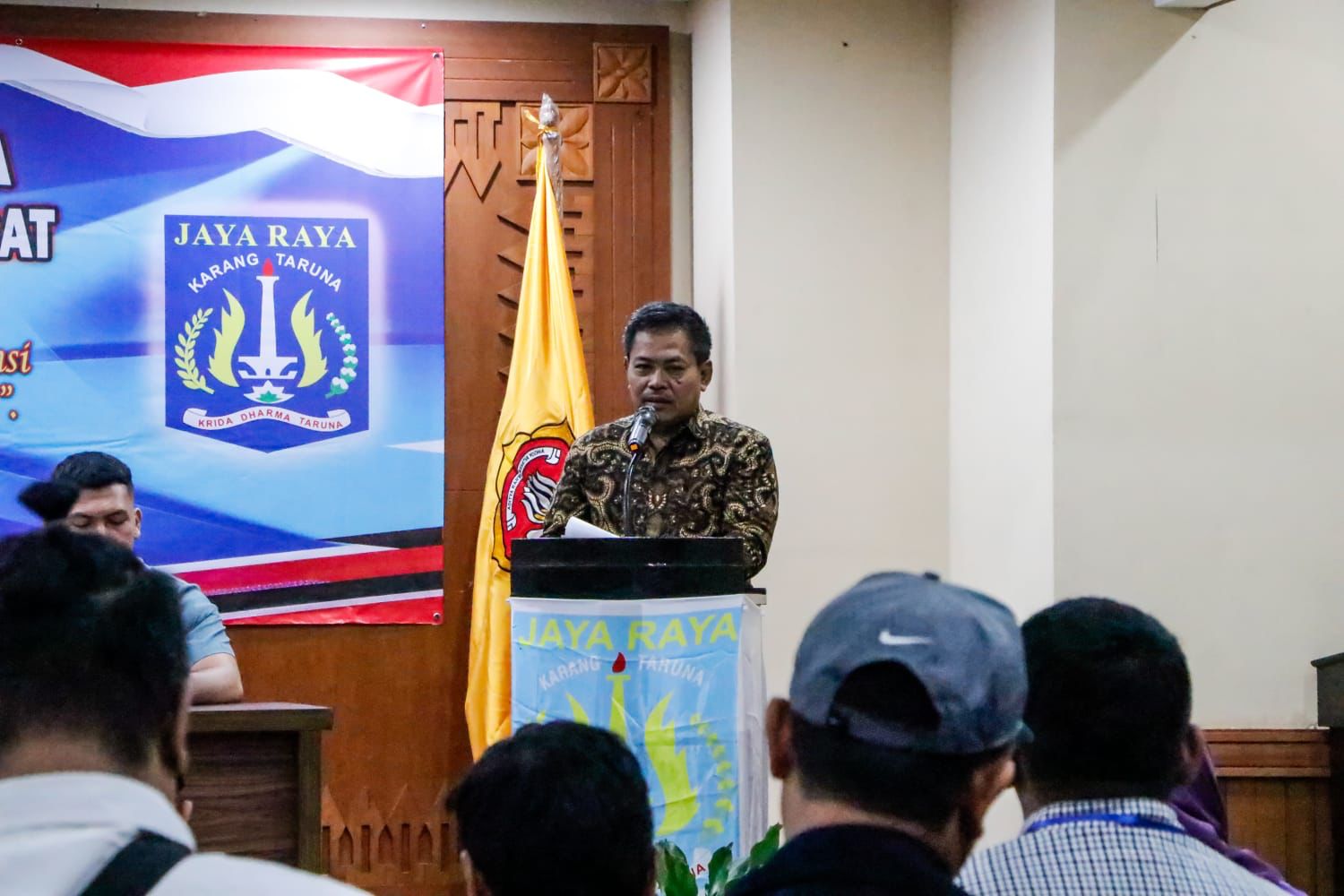 Kepala Suku Dinas Sosial Kota Administrasi Jakarta Pusat Abdul Salam Bersama Kepala Bagian Kesejahteraan Rakyat Setko Administrasi Jakarta Pusat Achmad Juhandi membuka Temu Karya IX Karang Taruna Kota Administrasi Jakarta Pusat di Ruang Serbaguna Besar, Kantor Wali Kota Jakarta Pusat, Minggu (30/7).