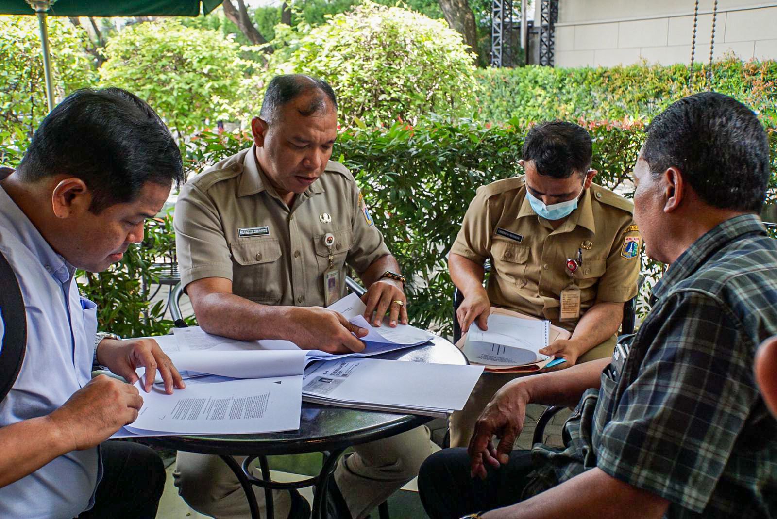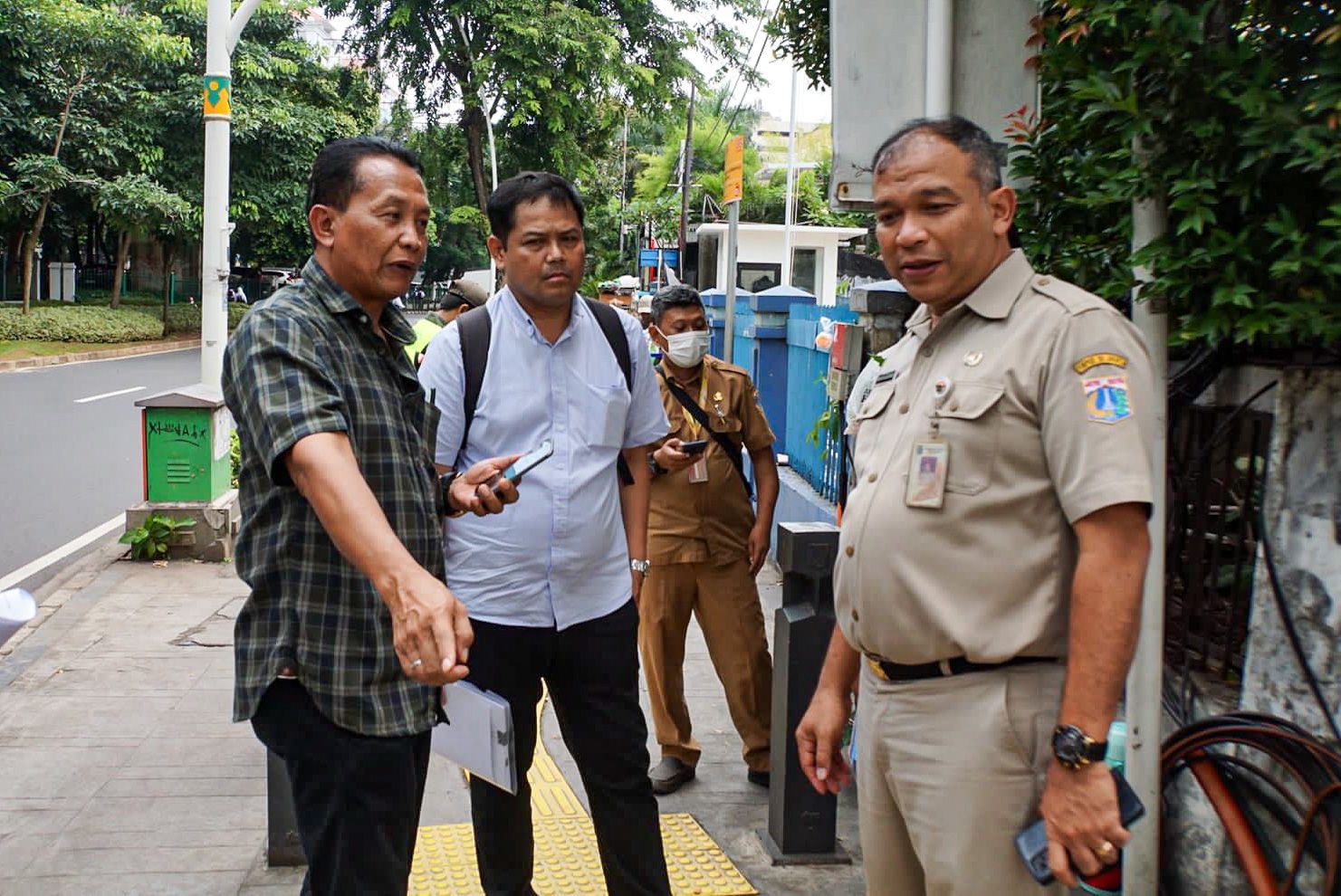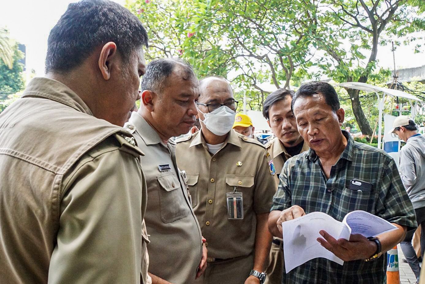 Pemerintah Kota (Pemkot) Administrasi Jakarta Pusat melalui Tim Pengendalian dan Pengawasan Wilayah (TP3W) melakukan penelitian fisik kewajiban fasilitas sosial fasilitas umum (fasos-fasum) Metropole PT Bioskop di Jakarta Metropole, Kelurahan Pegangsaan, Kecamatan Menteng, Senin (20/2).