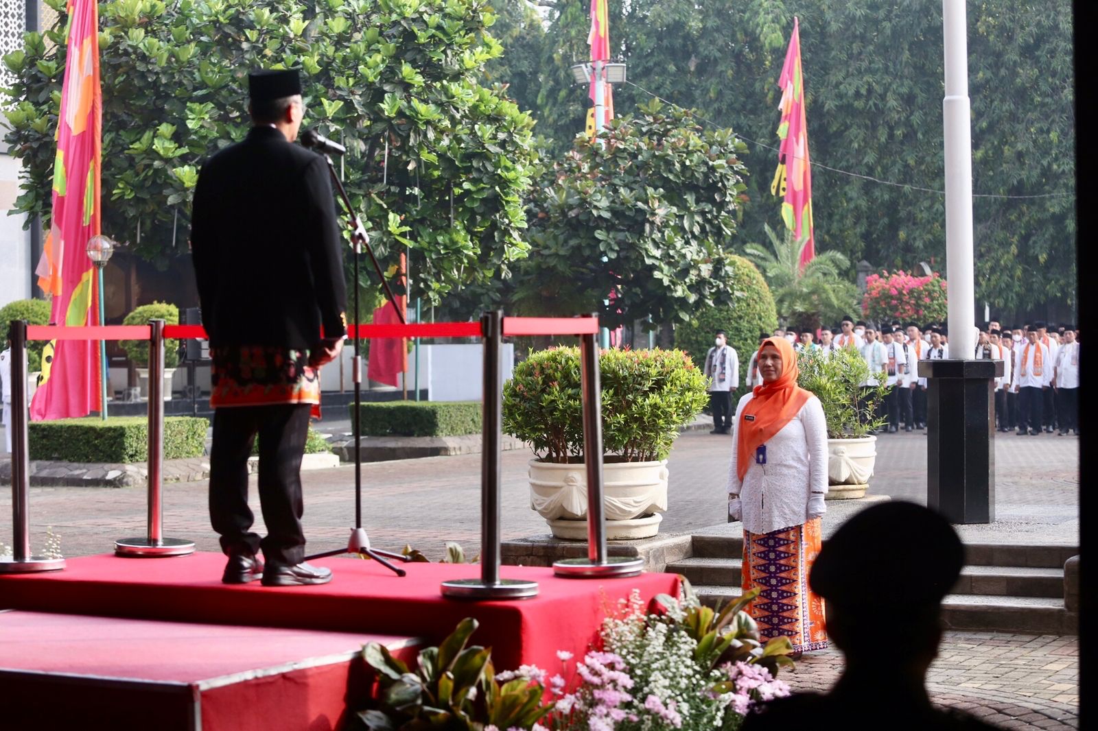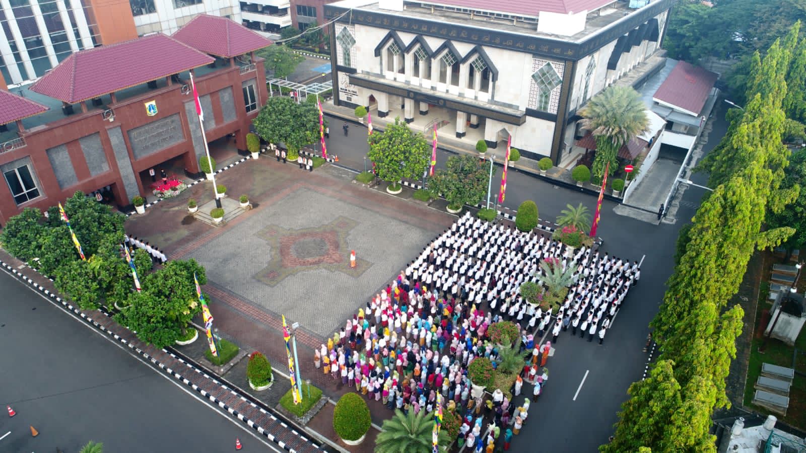 Pemerintah Kota Administrasi Jakarta Pusat menggelar upacara peringatan Hari Pendidikan Nasional (Hardiknas) di Halaman Kantor Wali Kota Jakarta Pusat, Selasa (2/5).