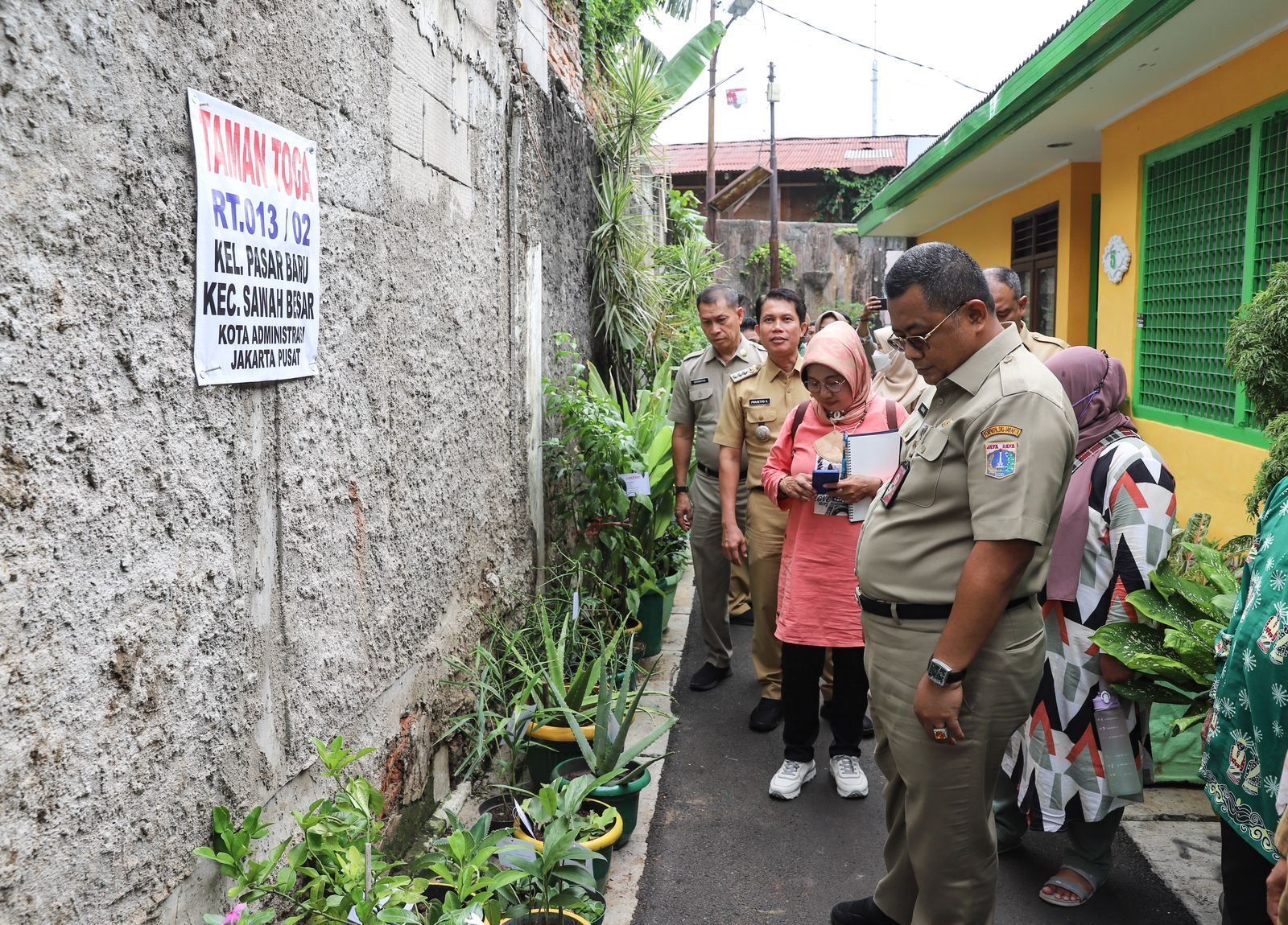 Plt Wakil Wali Kota Jakarta Pusat Iqbal Akbarudin menghadiri verifikasi lapangan penilaian dan pembinaan proklim tingkat pratama atau kota tahun 2023 di RW 02 Kelurahan Pasar Baru, Selasa (14/2).