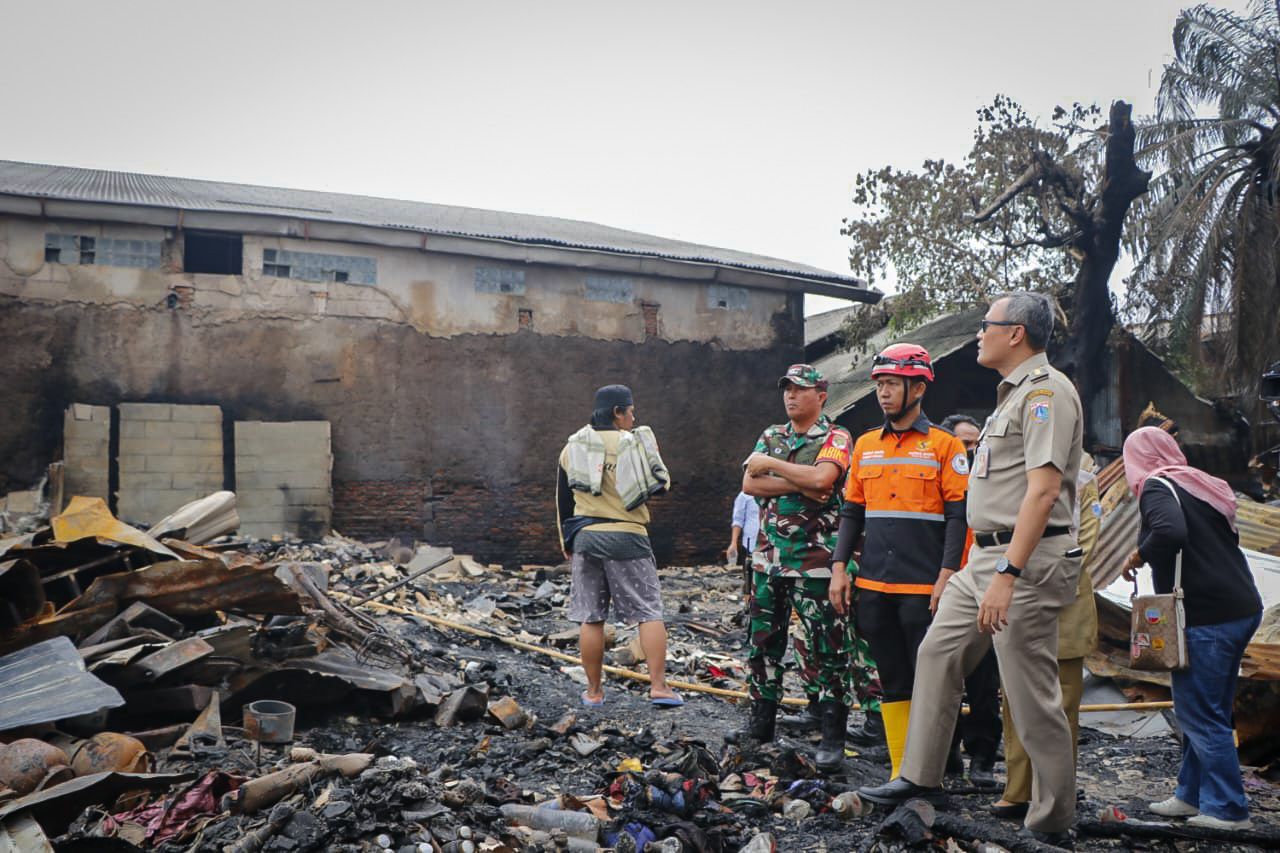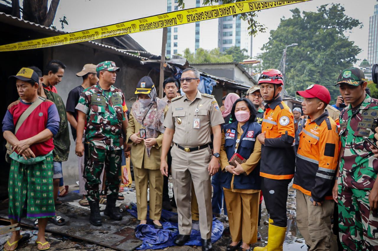 Wali Kota Administrasi Jakarta Pusat Dhany Sukma meninjau lokasi kebakaran bangunan semi permanen di Jalan Tanah Abang 5, RT 03 RW 03, Kelurahan Petojo Selatan, Kecamatan Gambir, Senin (27/2).