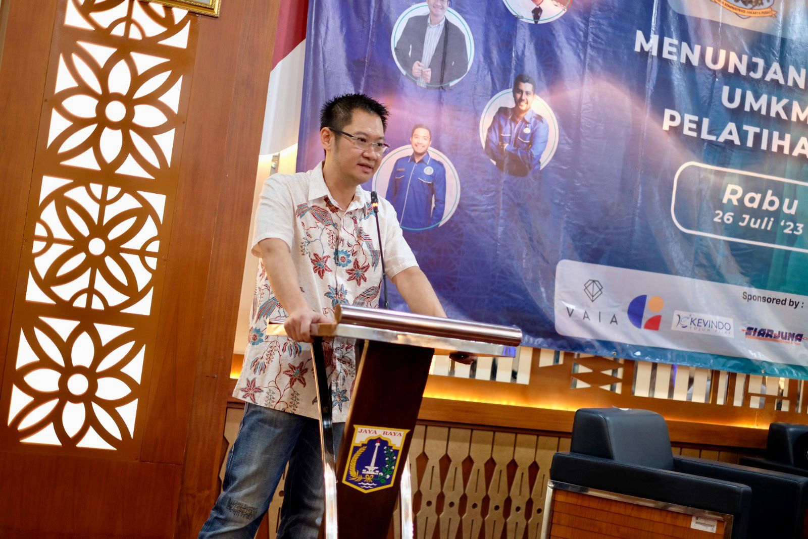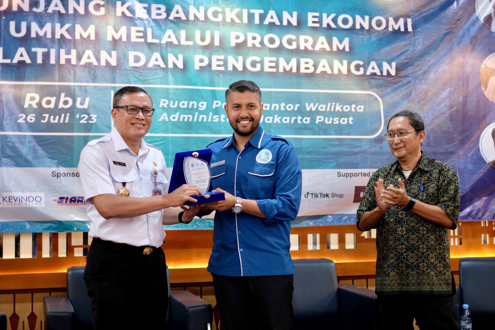 Gerakan Ekonomi Kreatif Nasional (Gekrafs) berkolaborasi dengan Pemerintah Kota (Pemkot) Administrasi Jakarta Pusat menggelar workshop Menunjang Kebangkitan Ekonomi UMKM Melalui Program Pelatihan dan Pengembangan di Ruang Pola, Kantor Wali Kota Jakarta Pusat, Jalan Tanah Abang I, Gambir, Rabu (26/7).