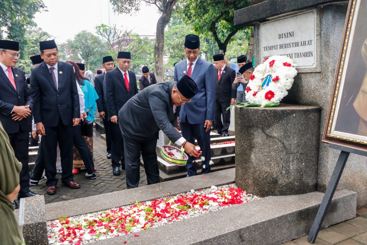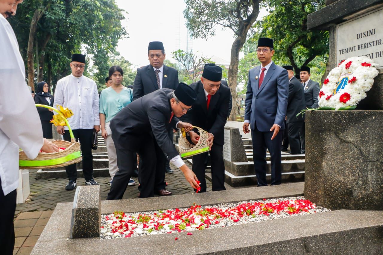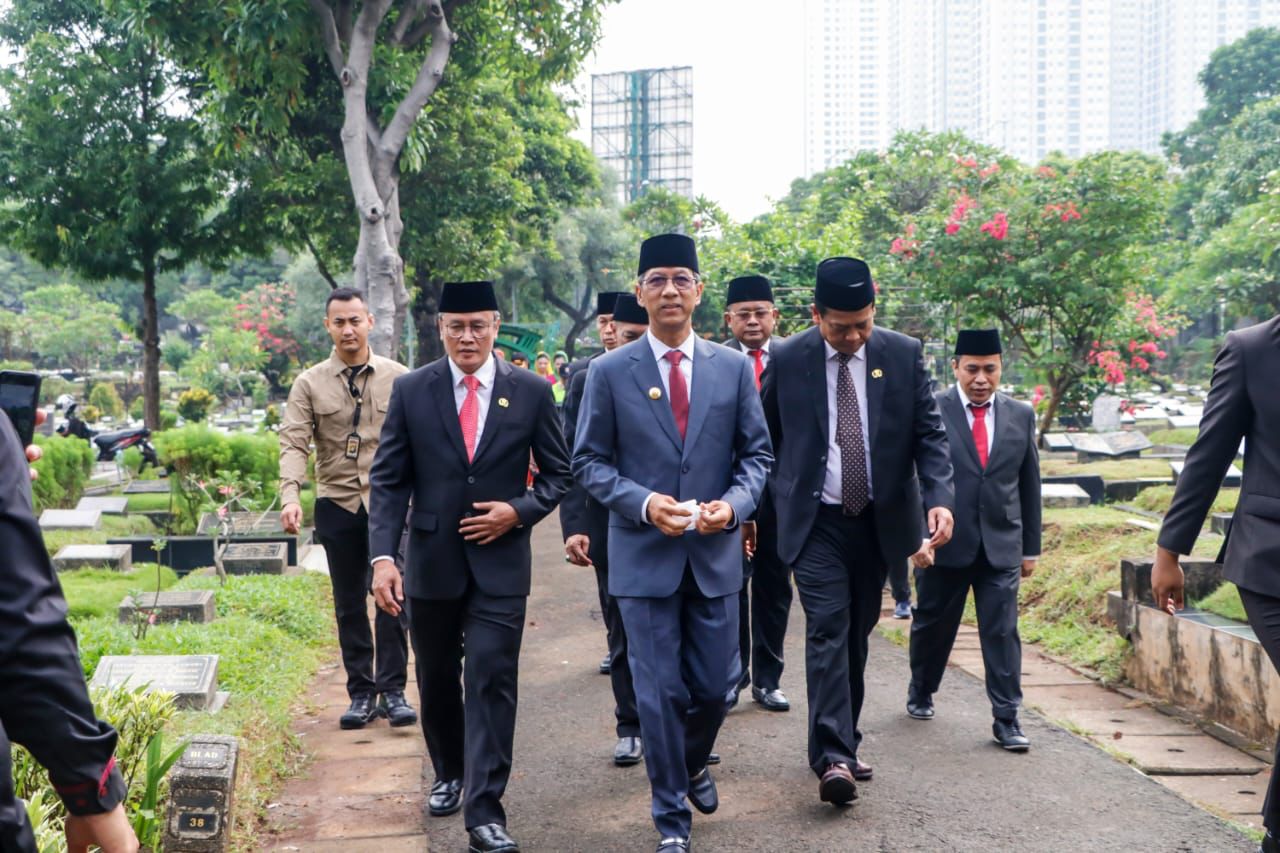 Wali Kota Admimistrasi Jakarta Pusat Dhany Sukma beserta Jajarannya mendampingi Penjabat (Pj) Gubernur Provinsi DKI Jakarta Heru Budi Hartono dan Sekretaris Daerah (Sekda) DKI Jakarta Joko Agus Setyono berziarah ke Taman Pemakaman Umum (TPU) Karet Bivak, Kecataman Tanah Abang, Jakarta Pusat, Sabtu (17/6).