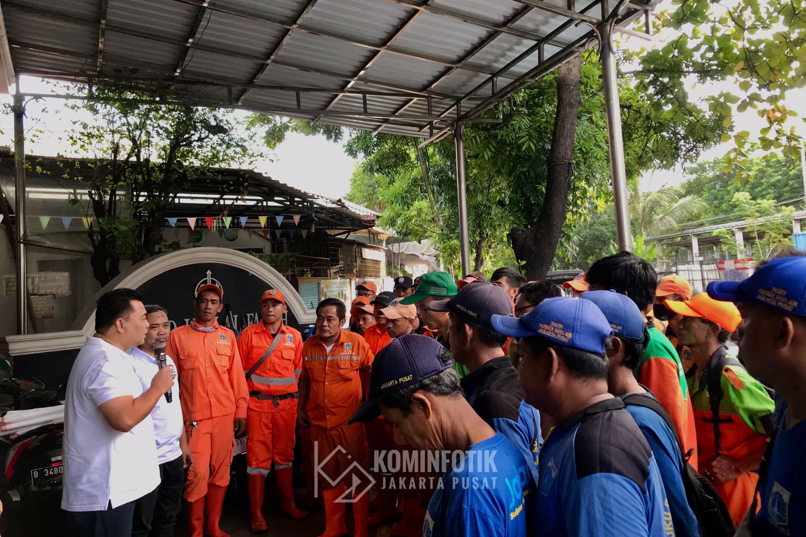 Asisten Pemerintahan Setko Administrasi Jakarta Pusat Denny Ramdany didampingi Lurah Gelora Nurul Huda meninjau pelaksanaan Kerja Bakti dan Gerebek Lumpur di lingkungan RW 01, Jalan Gelora VI, Kelurahan Gelora, Kecamatan Tanah Abang, Jakarta Pusat, Minggu (21/1) pagi.