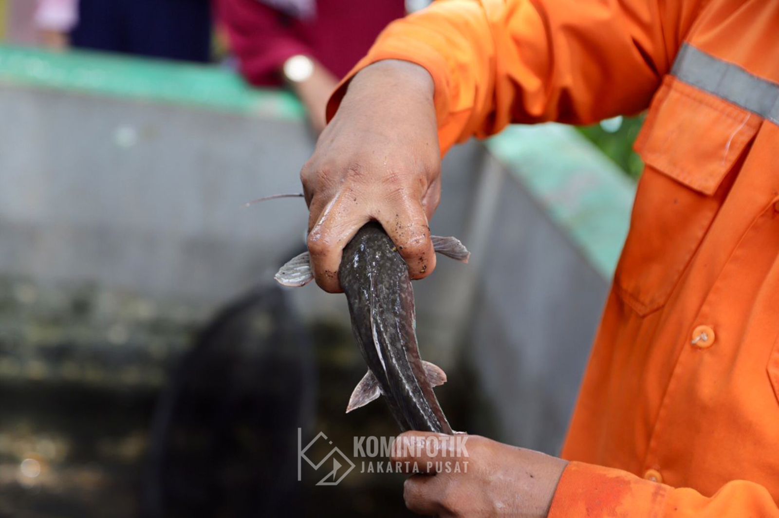 Sebanyak 27 kilogram ikan lele berhasil dipanen di RPTRA Kampung Benda, Jalan Cempaka Putih Tengah XV, Kelurahan Cempaka Putih Timur (CPT), Kecamatan Cempaka Putih, Jakarta Pusat, Selasa (22/1)