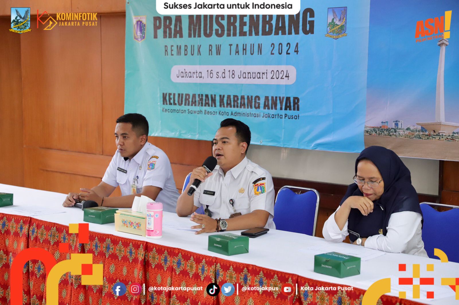 Lurah Karang Anyar Arif Lingga Pratama memimpin Pra Musyawarah Perencanaan Pembangunan (Musrenbang) Tingkat Kelurahan, di aula kantor kelurahan setempat, Jalan B RT 08/RW 05, Kecamatan Sawah Besar, Jakarta Pusat, Rabu (17/1).