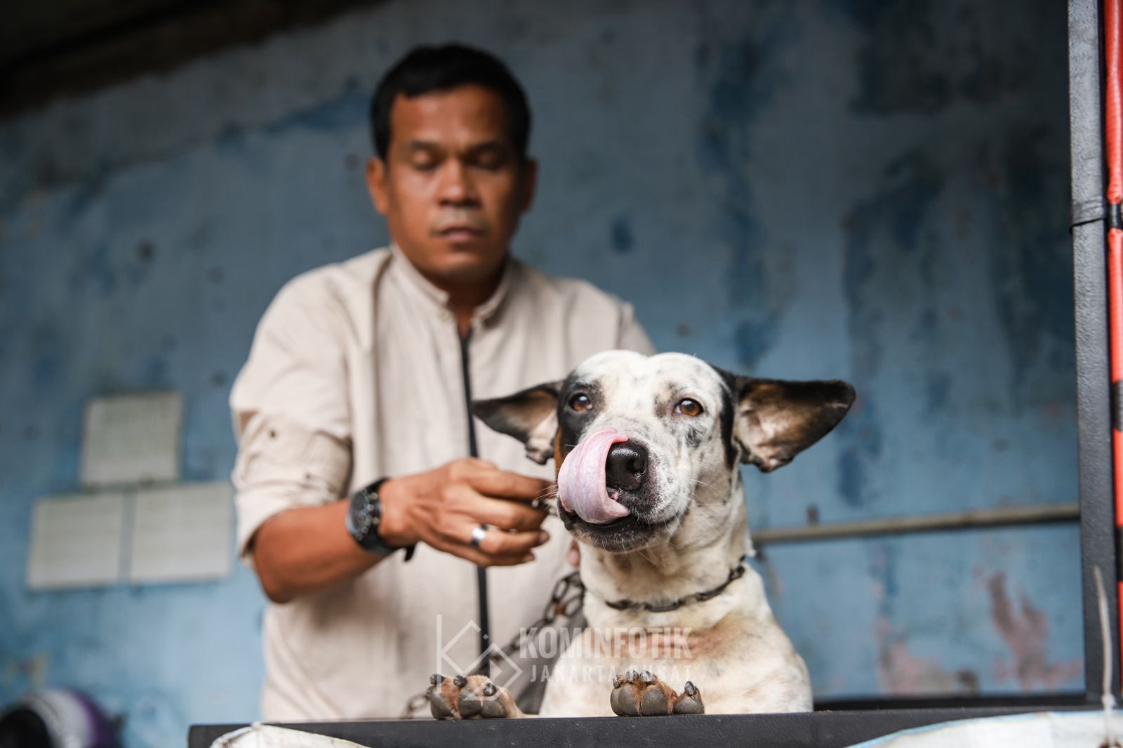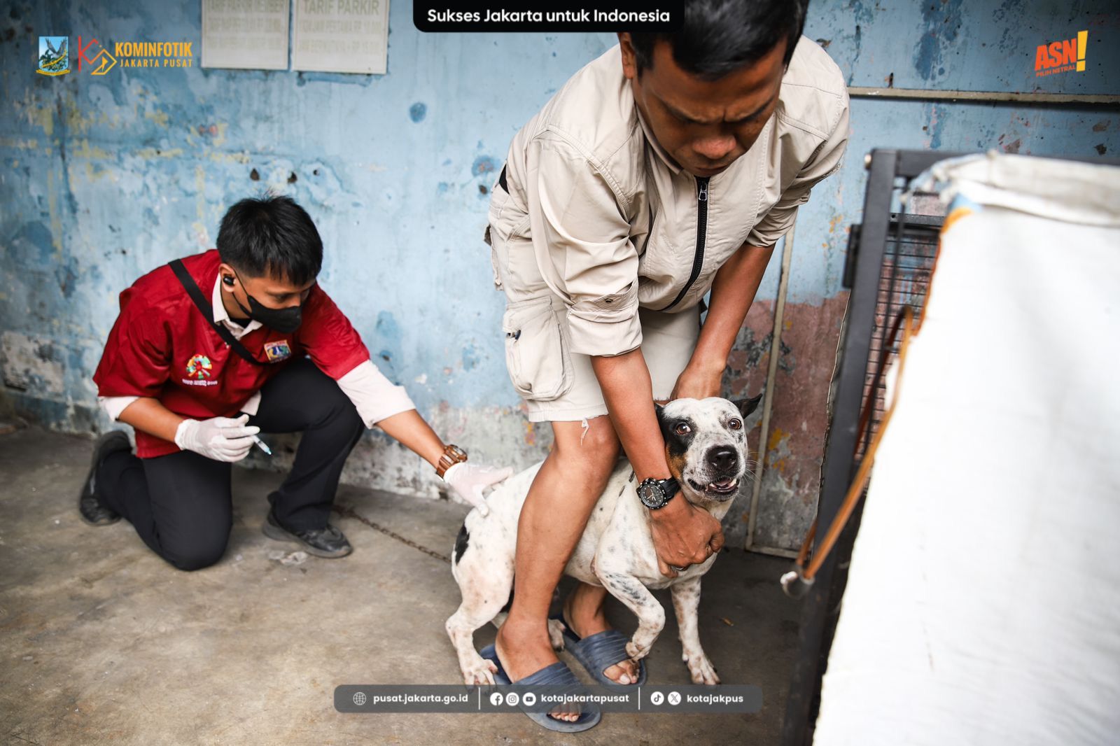 Suku Dinas Ketahanan Pangan, Kelautan dan Perikanan (Sudin KPKP) Kota Administrasi Jakarta Pusat menggelar Vaksinasi Rabies di wilayah RW 01 Kelurahan Gelora, Kecamatan Tanah Abang, Jakarta Pusat, Senin (19/2).