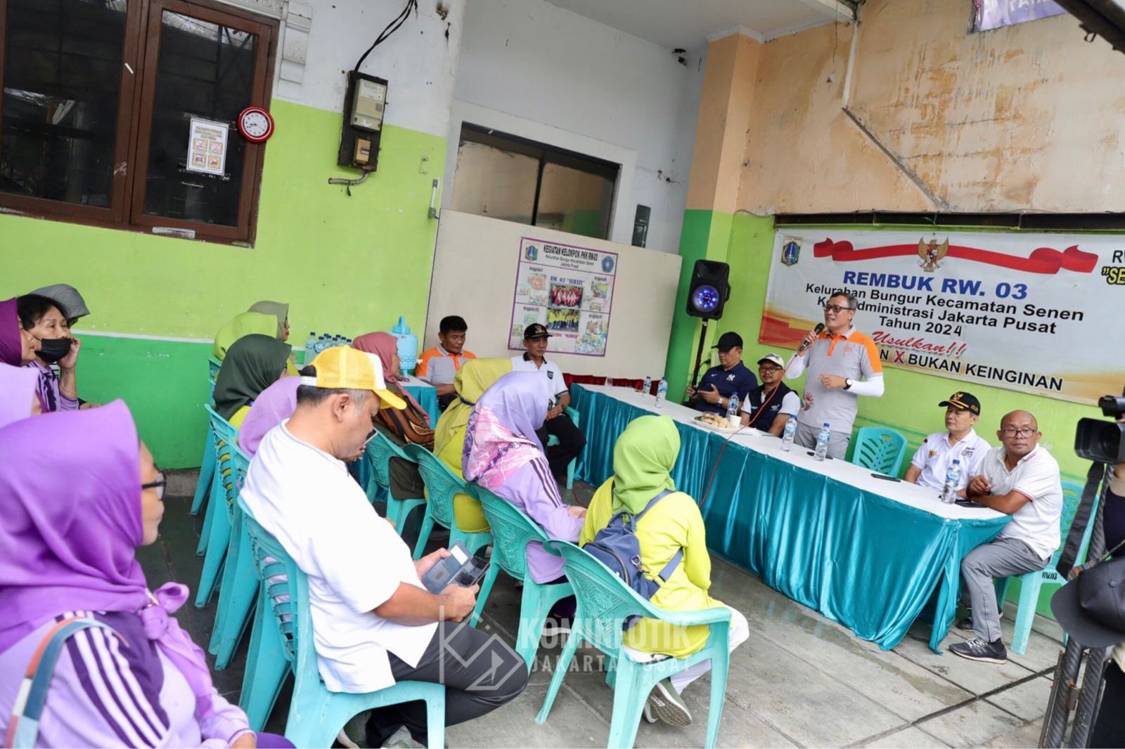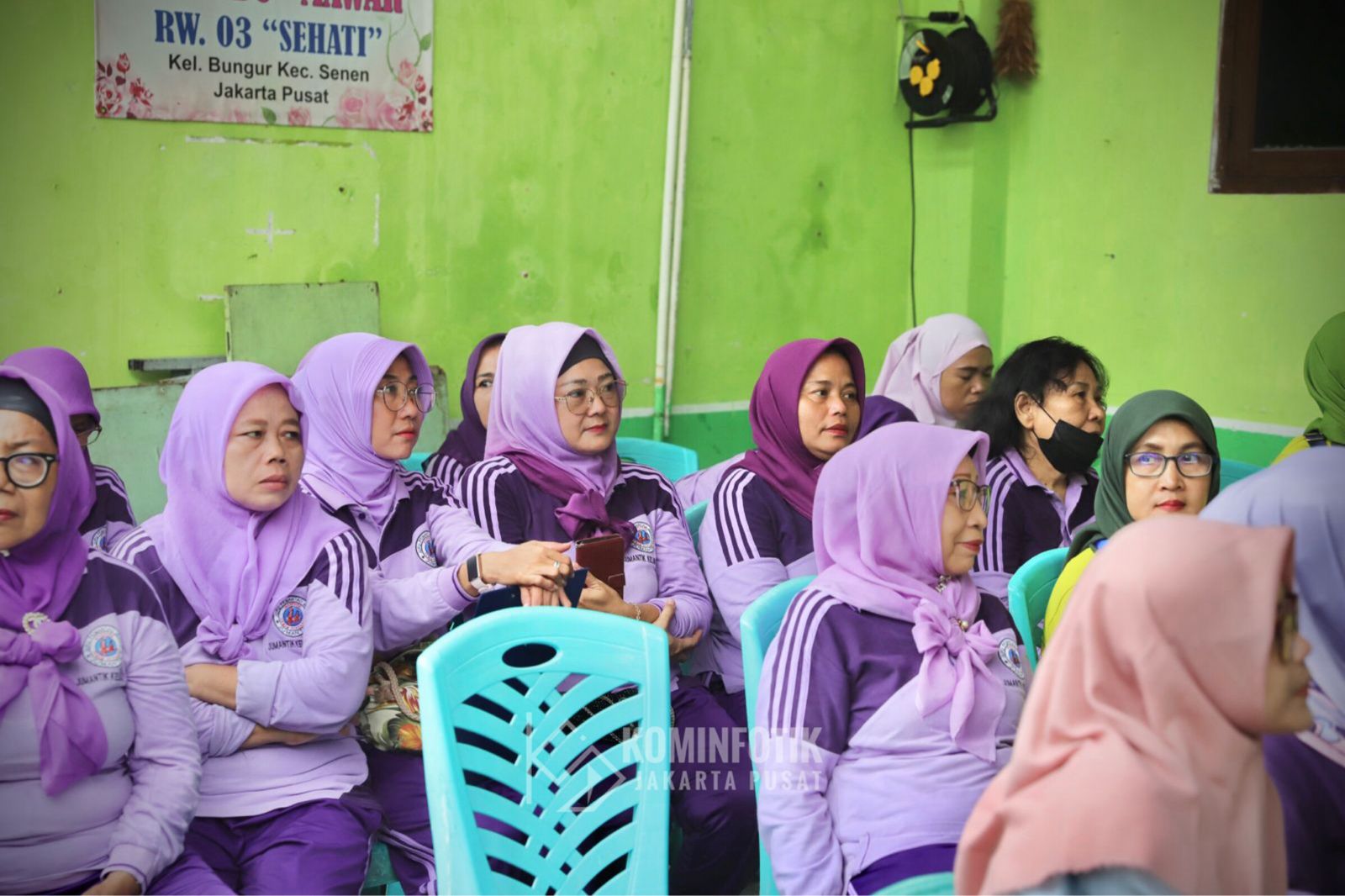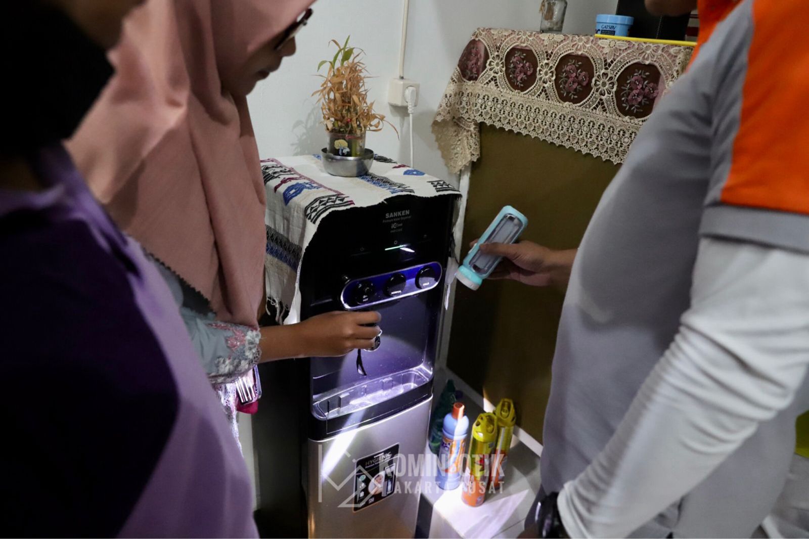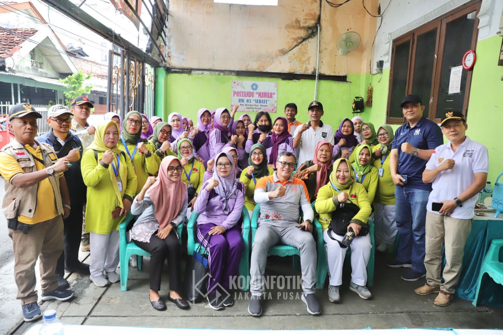 Wali Kota Administrasi Jakarta Pusat Dhany Sukma bersama para kader Jumantik Kelurahan Bungur berkeliling rumah warga untuk mengecek keberadaan jentik nyamuk di wilayah RW 03 Bungur, Kecamatan Senen, Jum’at (16/2).
