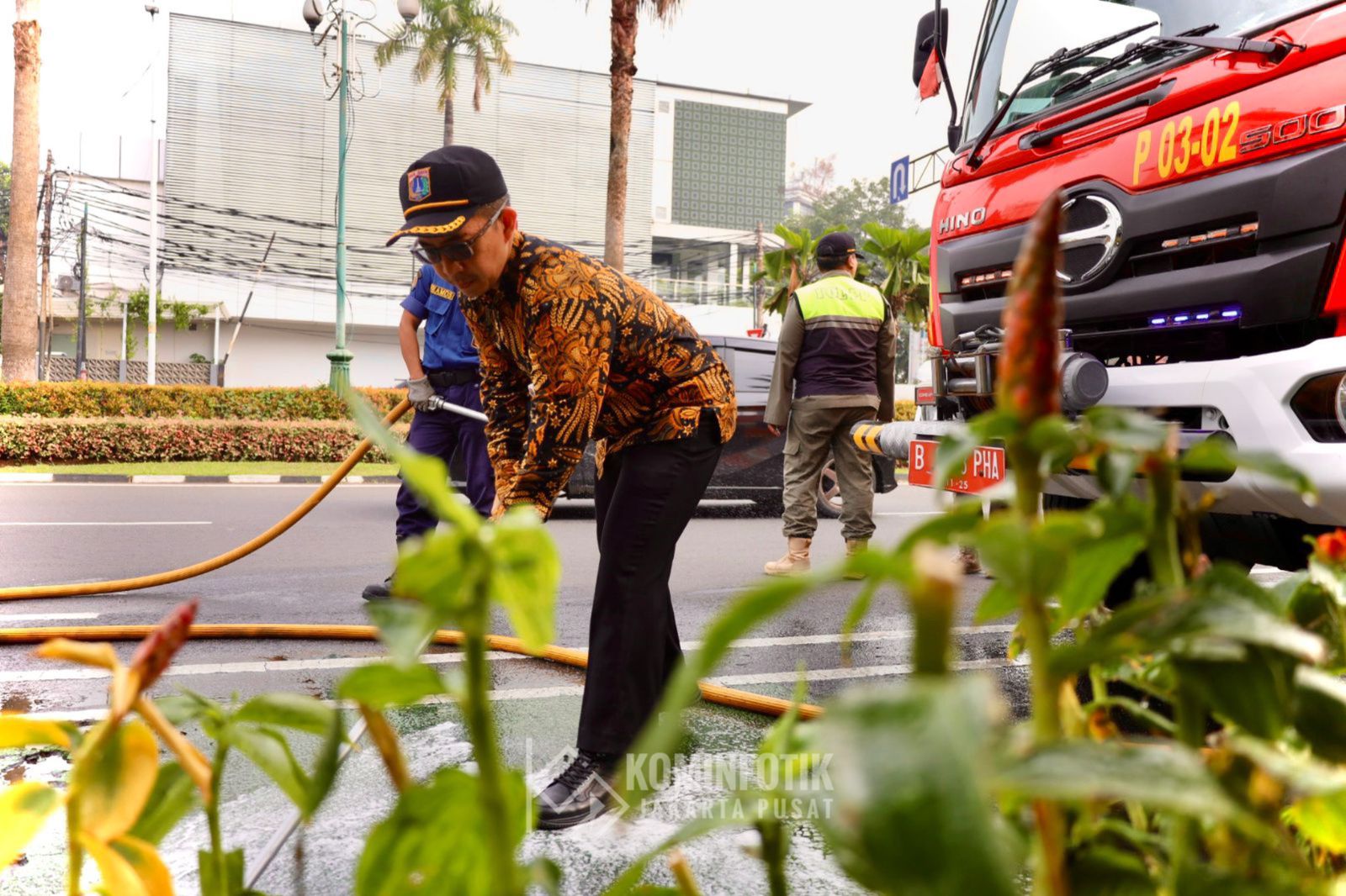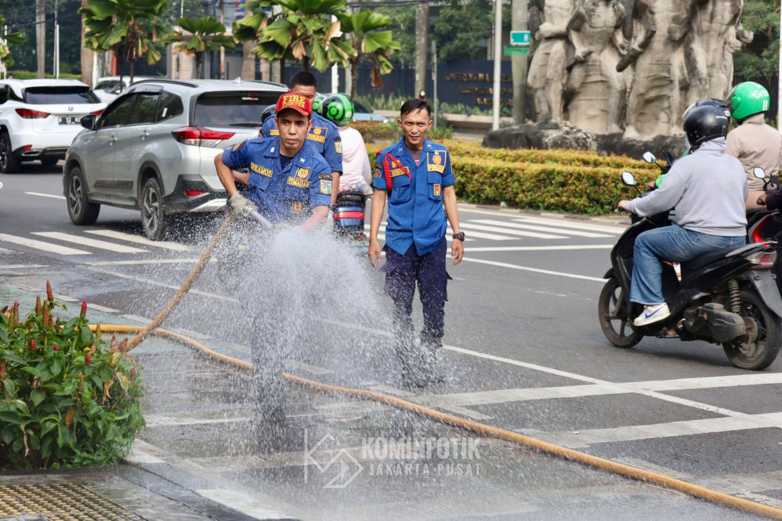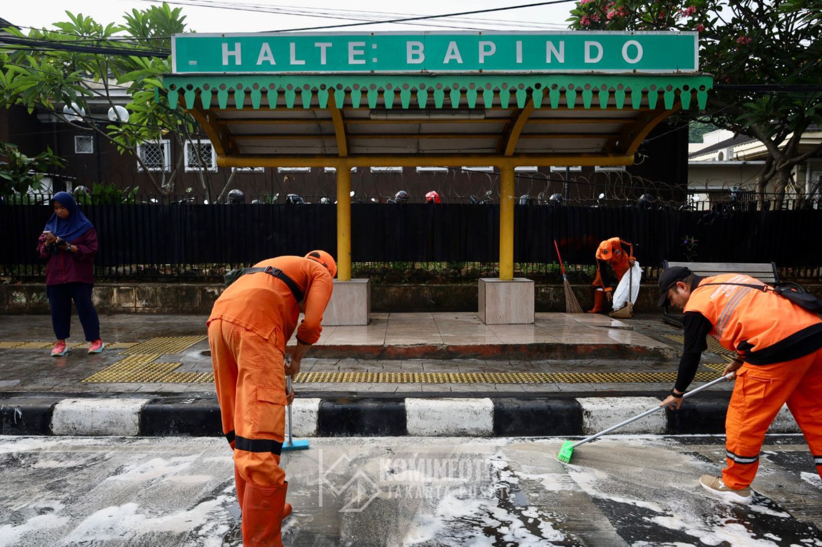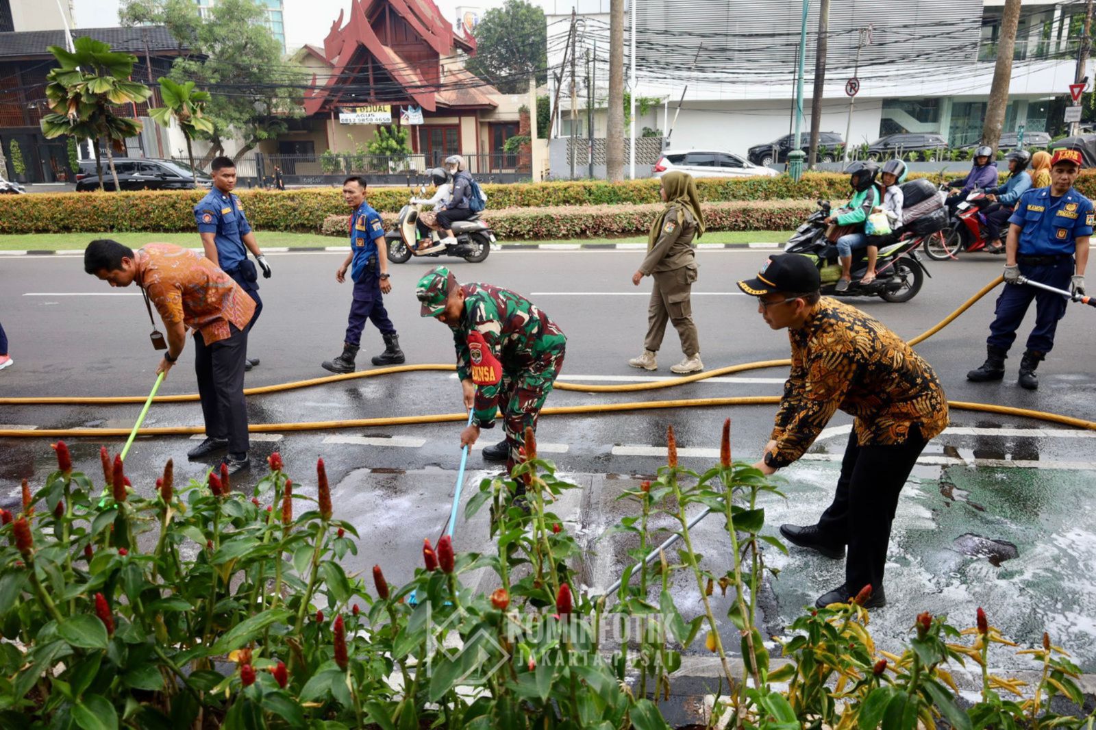 40 Personel Gabungan Kelurahan Cikini Bersihkan Jalur Pejalan Kaki Jalan Cut Mutia